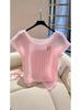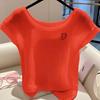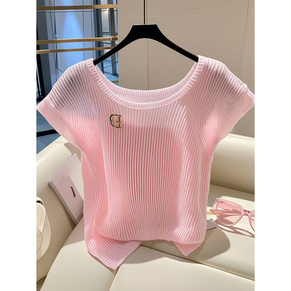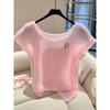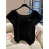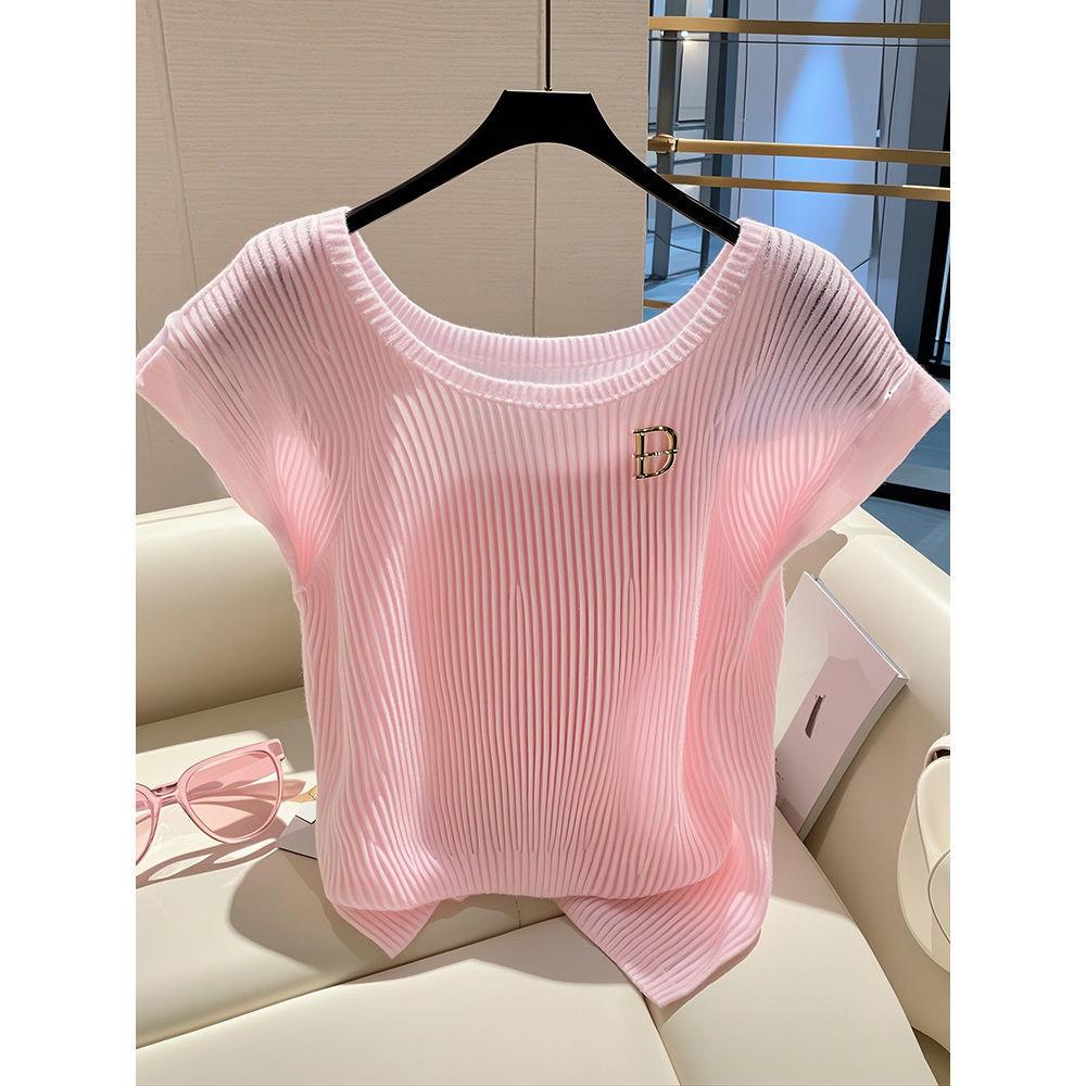 Compra Moda Verano 2024 Nueva Entrada Lujo Ligero Alta Gama Estilo Occidental Hermoso Blanco Hombro Adelgazante Manga Corta Top de Punto para Mujer al por mayor en Joom.pro