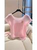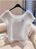 Moda Verano 2024 Nueva Entrada Lujo Ligero Alta Gama Estilo Occidental Hermoso Blanco Hombro Adelgazante Manga Corta Top de Punto para Mujer