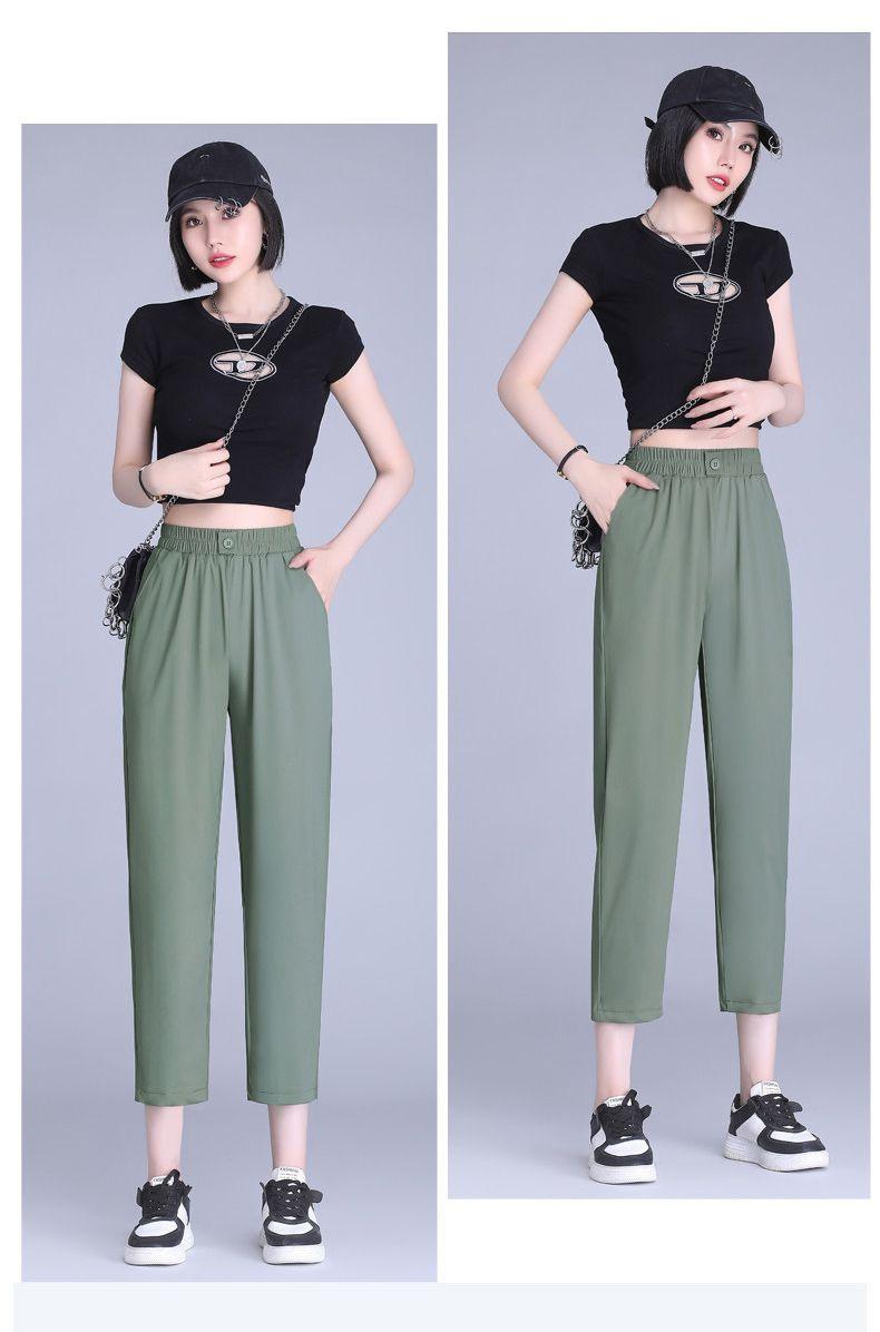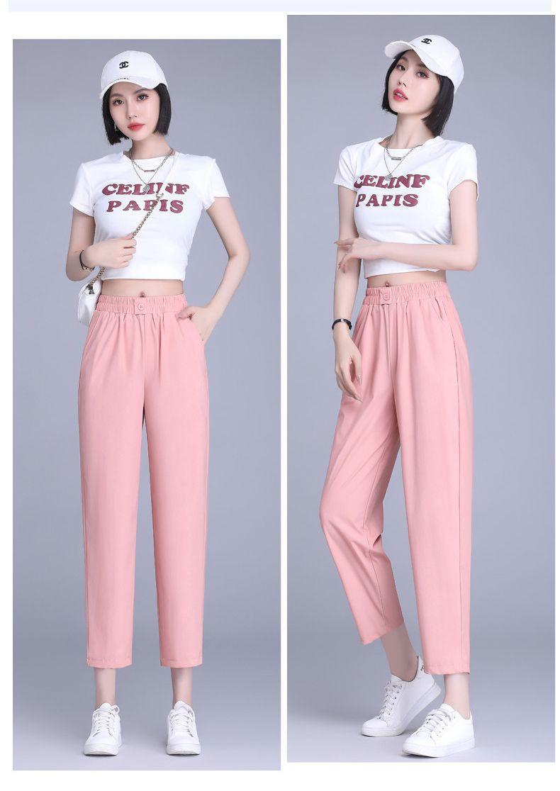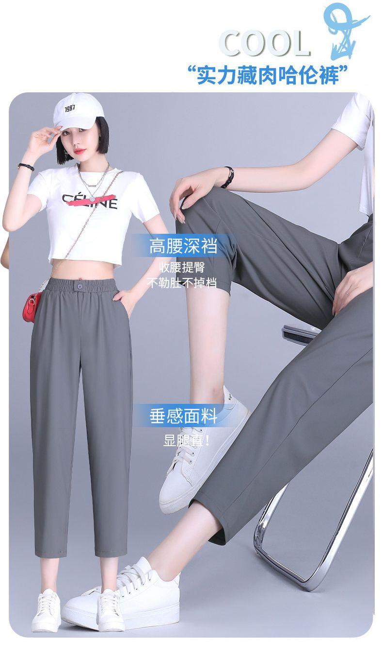 Pantalones de Color Sólido Recién Llegados Verano Estilo Coreano Talla Grande Adelgazantes Cintura Alta Casuales Pantalones de Moda Sueltos Harlan para Mujer
