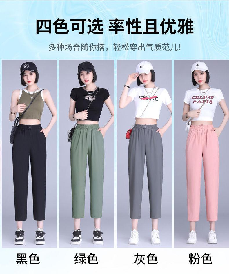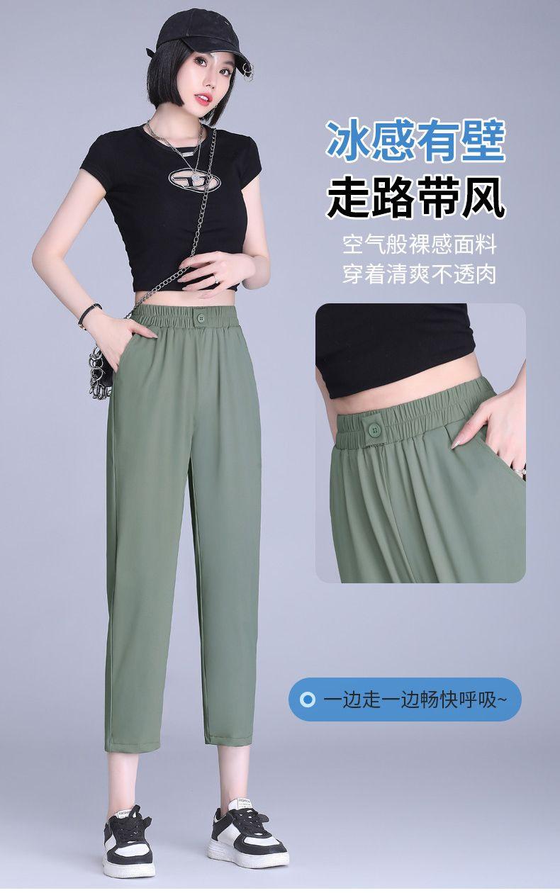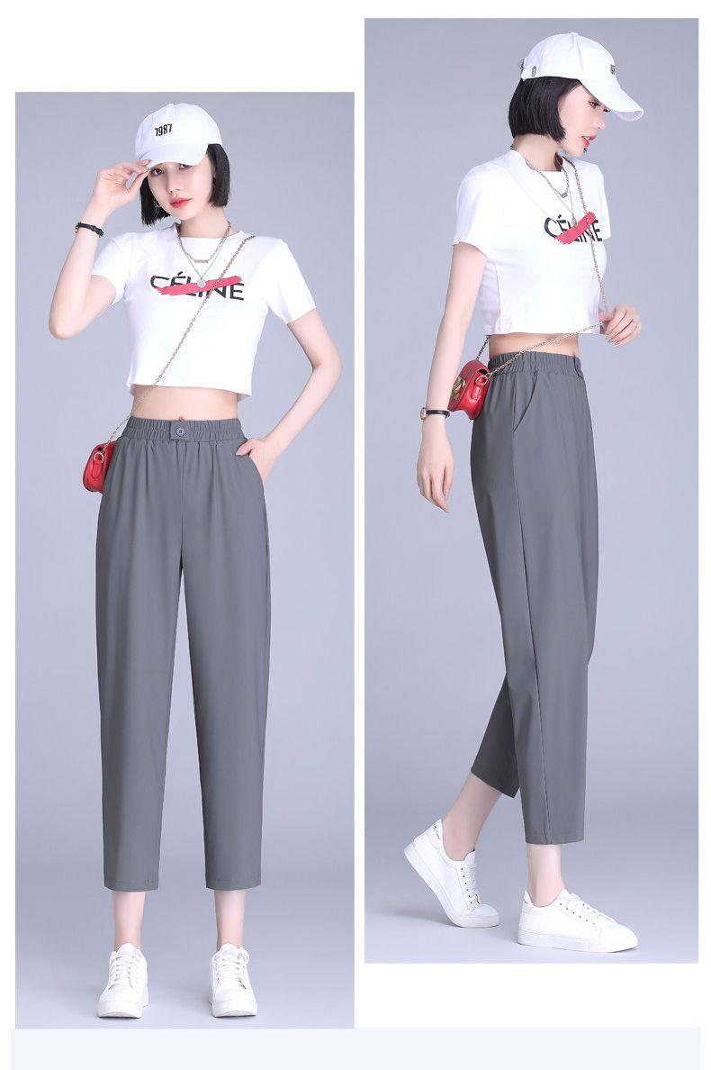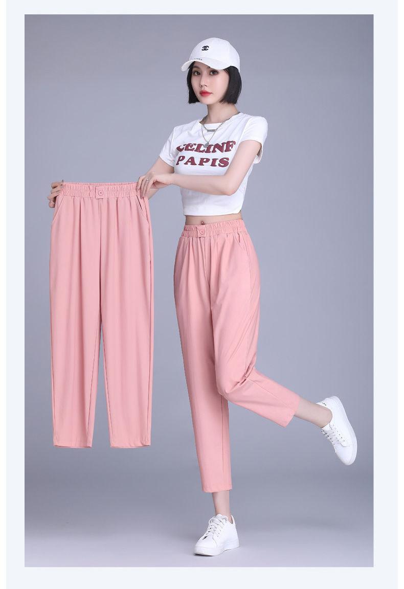 Pantalones de Color Sólido Recién Llegados Verano Estilo Coreano Talla Grande Adelgazantes Cintura Alta Casuales Pantalones de Moda Sueltos Harlan para Mujer