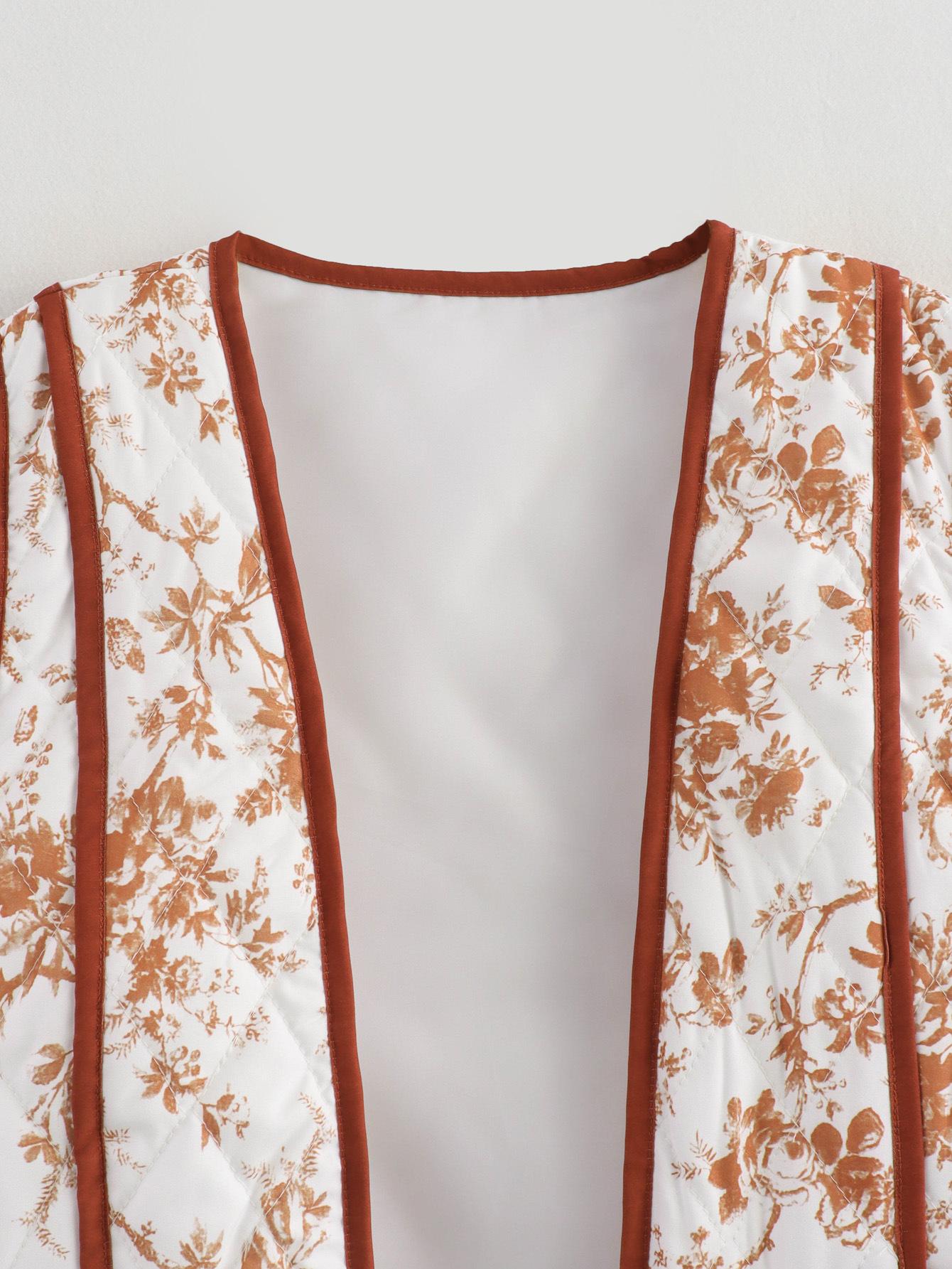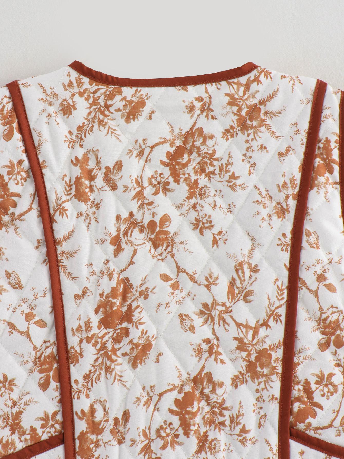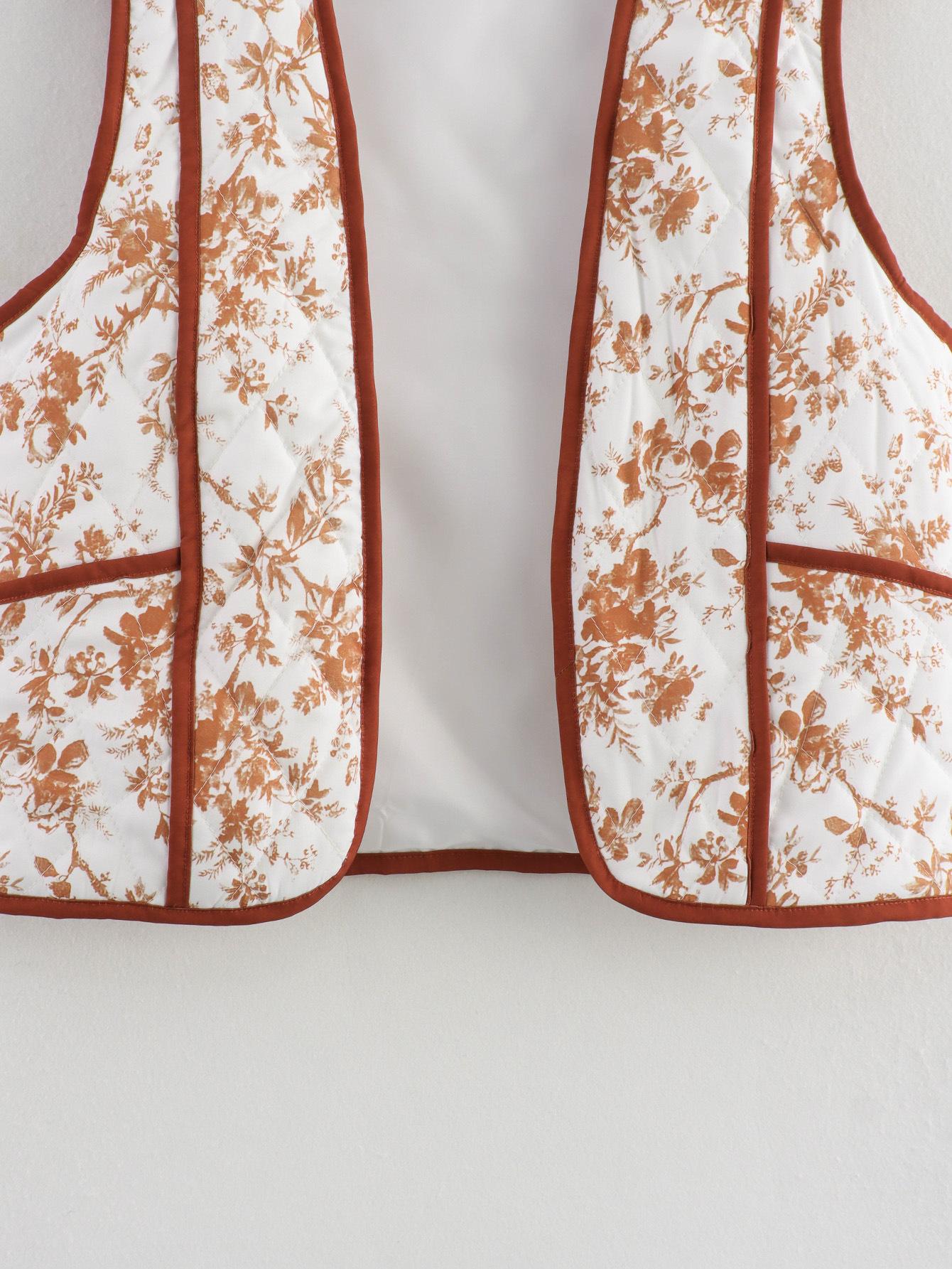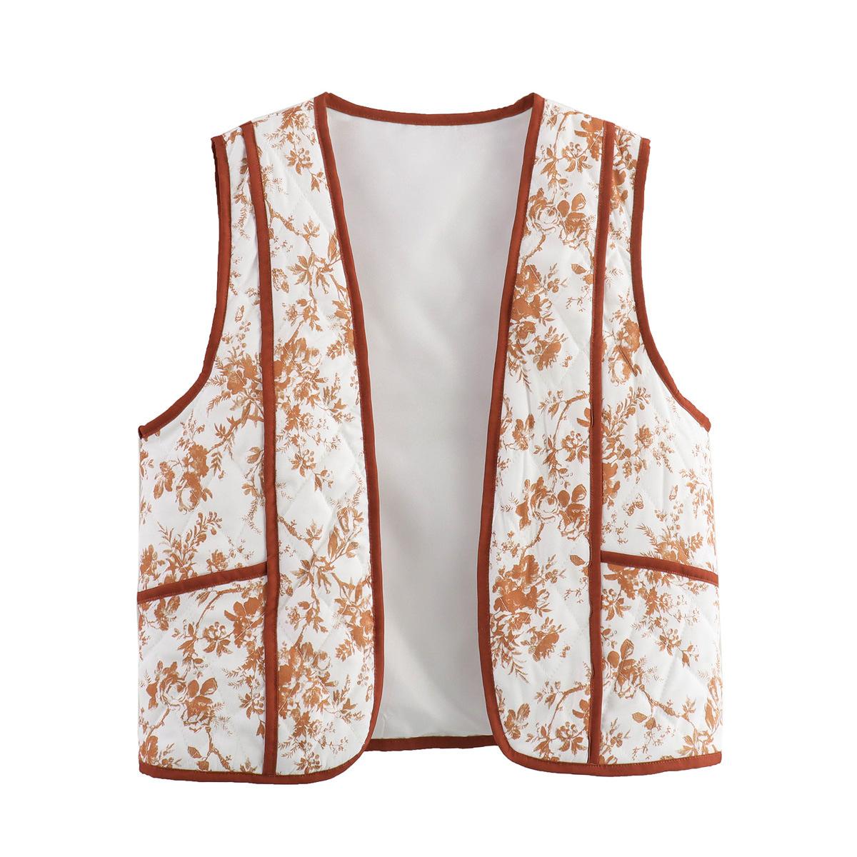 Chaleco corto de algodón acolchado estampado, ajustado y a la moda para mujer europea y americana, otoño 2024, B69101
