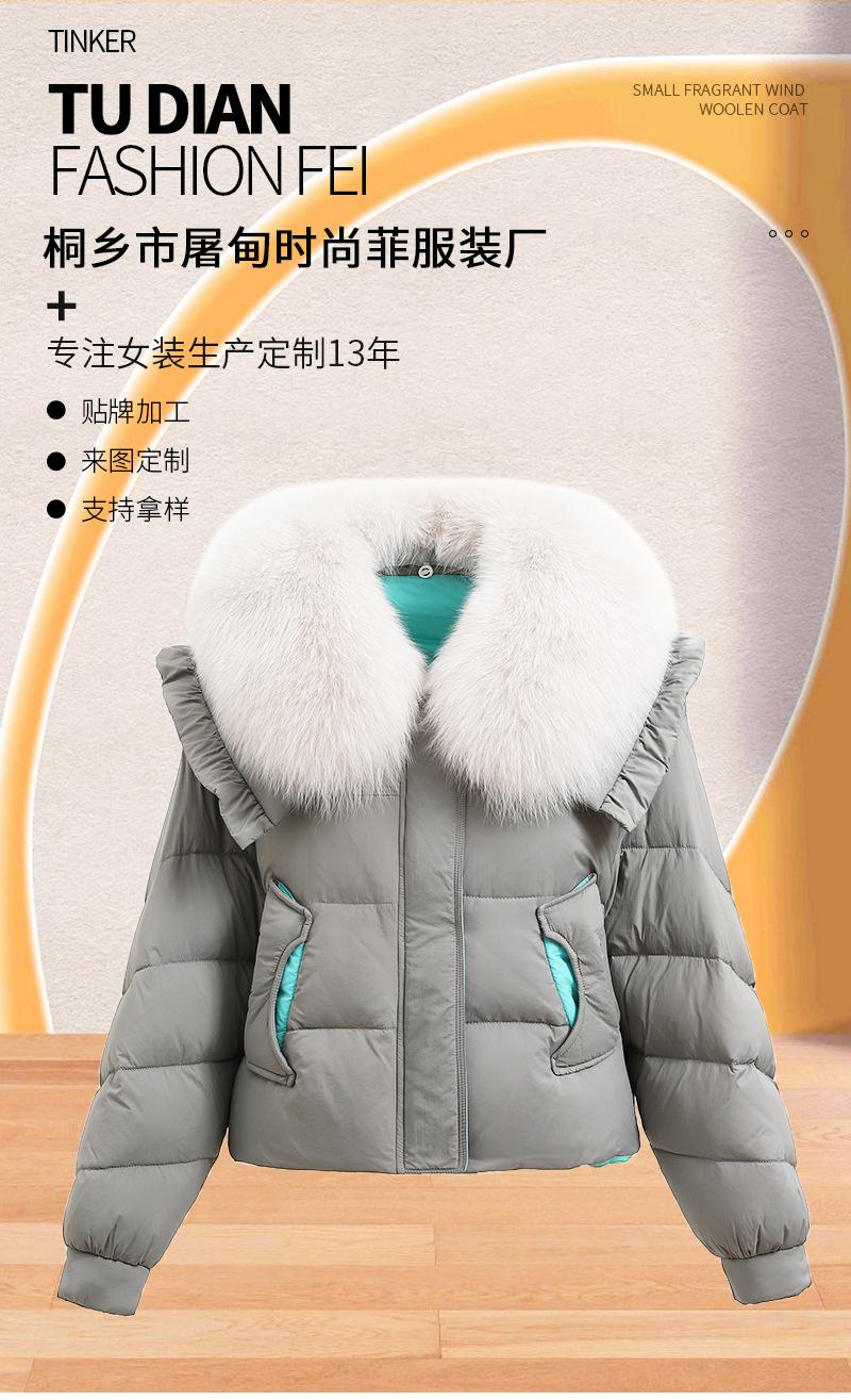 Compra 2025 Otoño e Invierno Nuevo Plumífero de Plumón de Ganso Blanco para Mujer Manga Corta Cuello de Piel Plumífero Cálido para Mujer al por mayor en Joom.pro