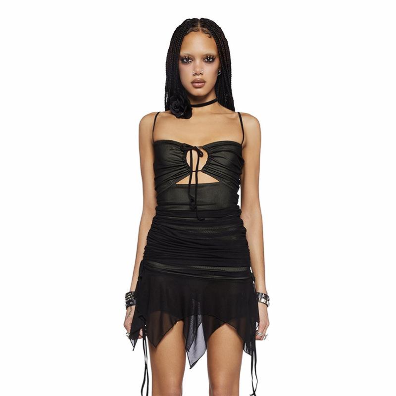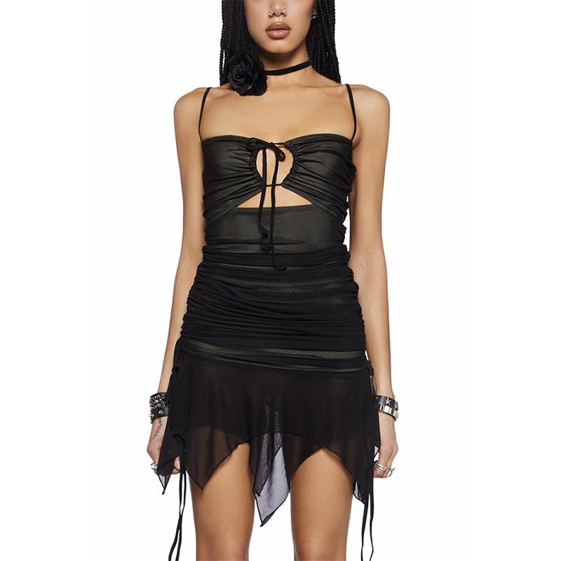 Vestido de otoño 2024 de estilo europeo y americano con cuello halter, ajustado, de cintura alta, de un solo color y estilo cruzado para mujer