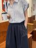 Camisa de rayas azules para mujer, diseño de verano, estilo nicho, manga de tres puntos, holgada, estilo europeo, elegante