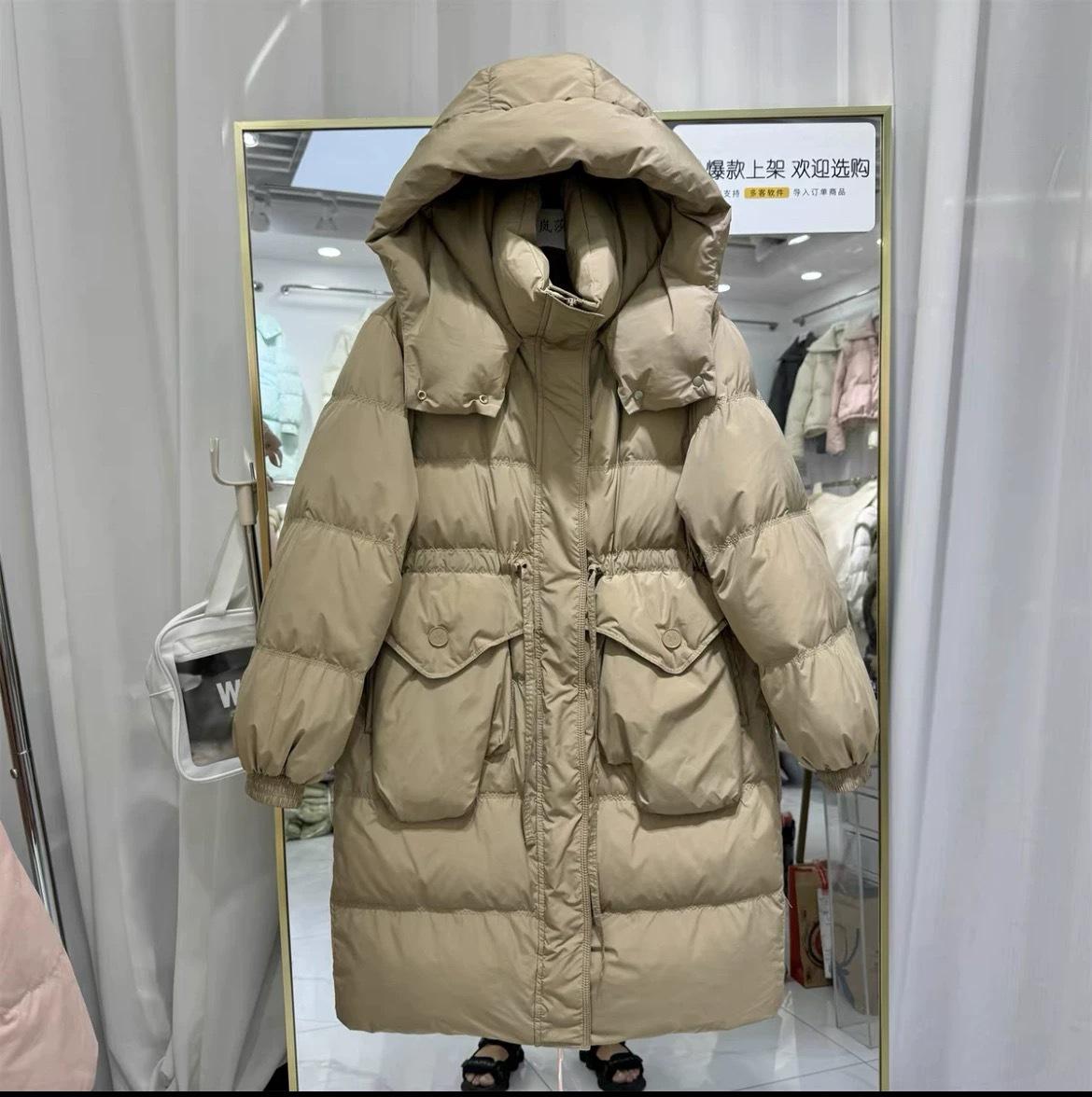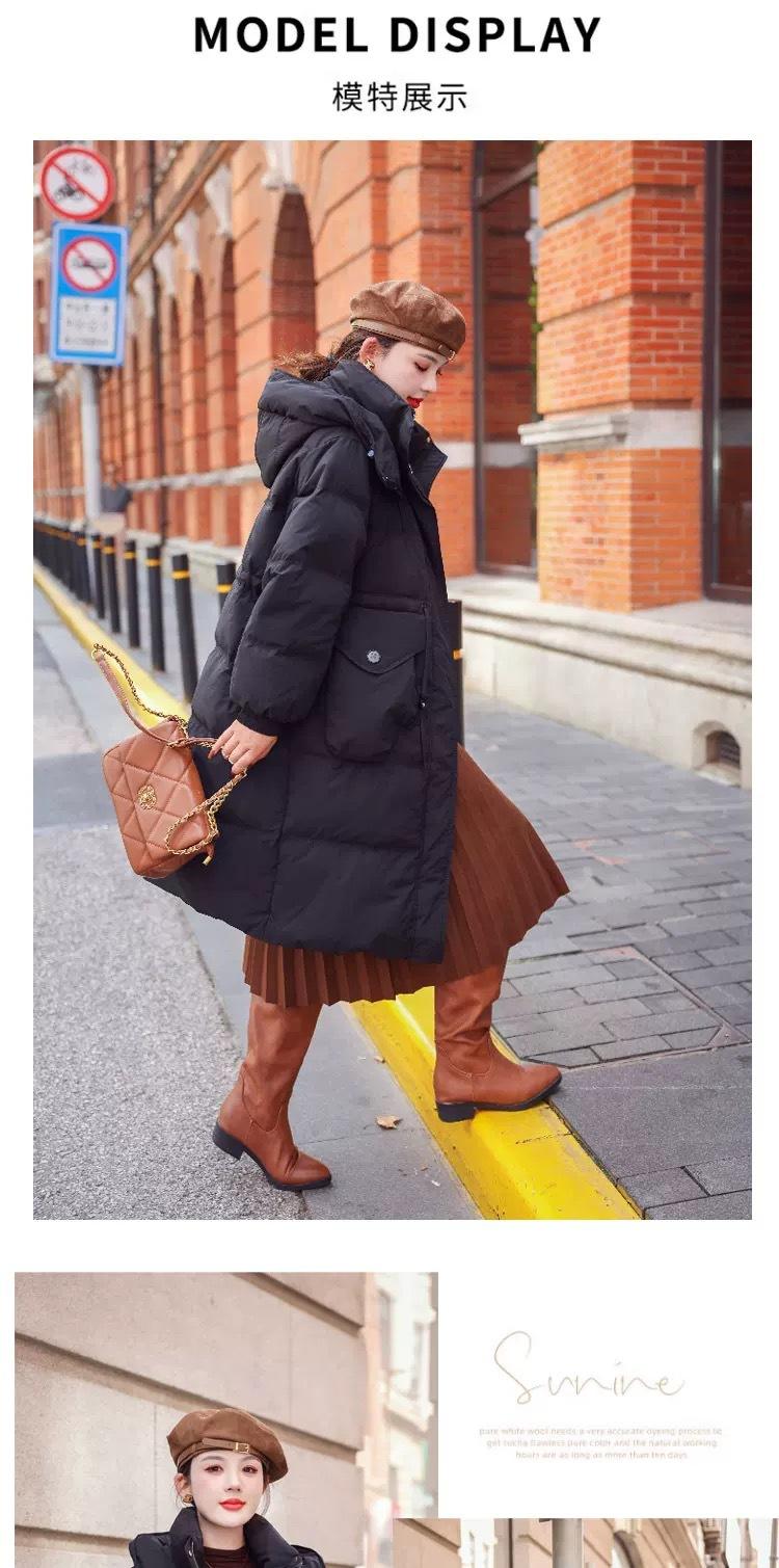 Compra Chaqueta de plumón para mujer, invierno 2024, nueva chaqueta de plumón de pato blanco estilo coreano de alta gama, de longitud media, ajustada, con capucha y cálida. al por mayor en Joom.pro