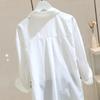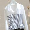 Camisa blanca holgada informal de manga larga con diseño de costura de rayas blancas para mujer, de primavera, a la moda