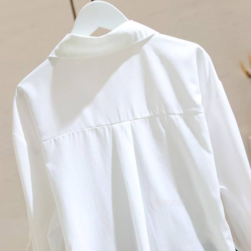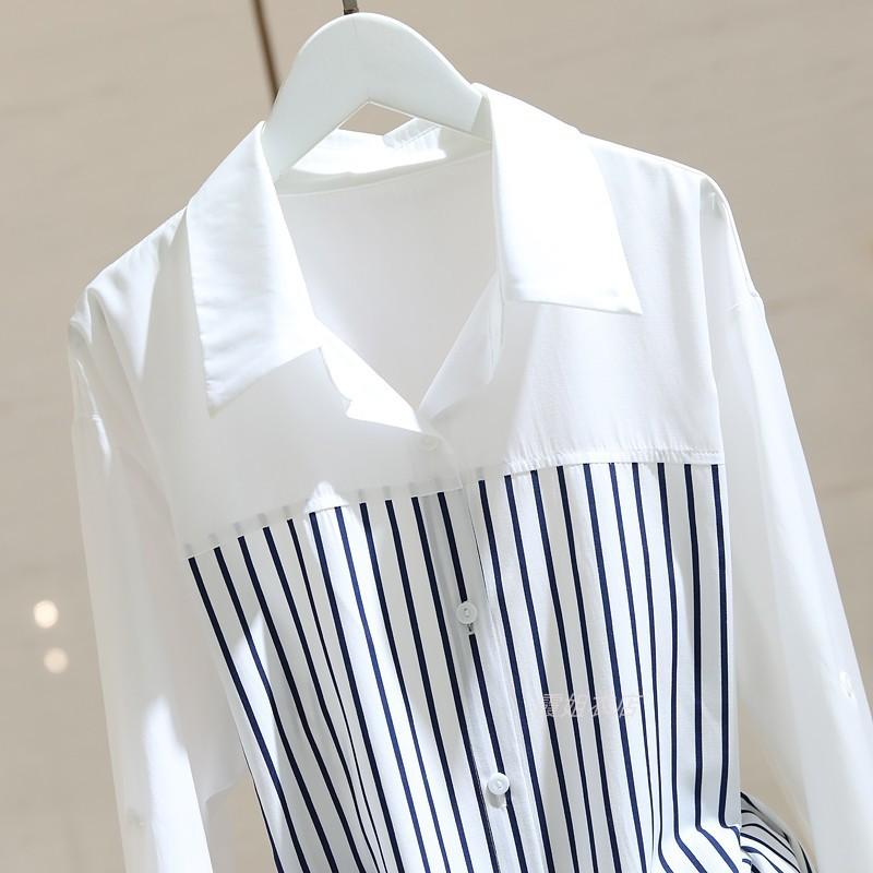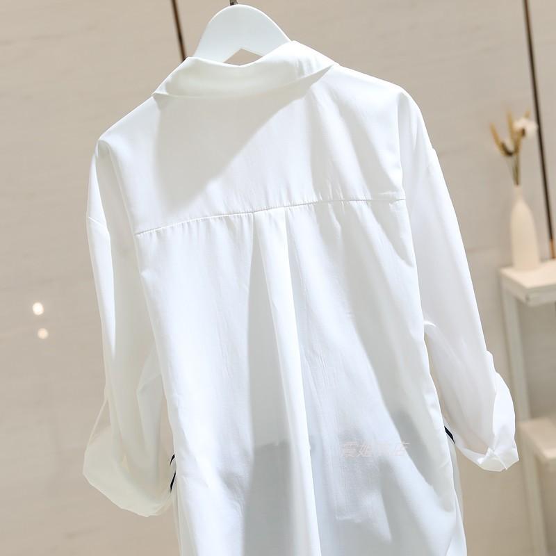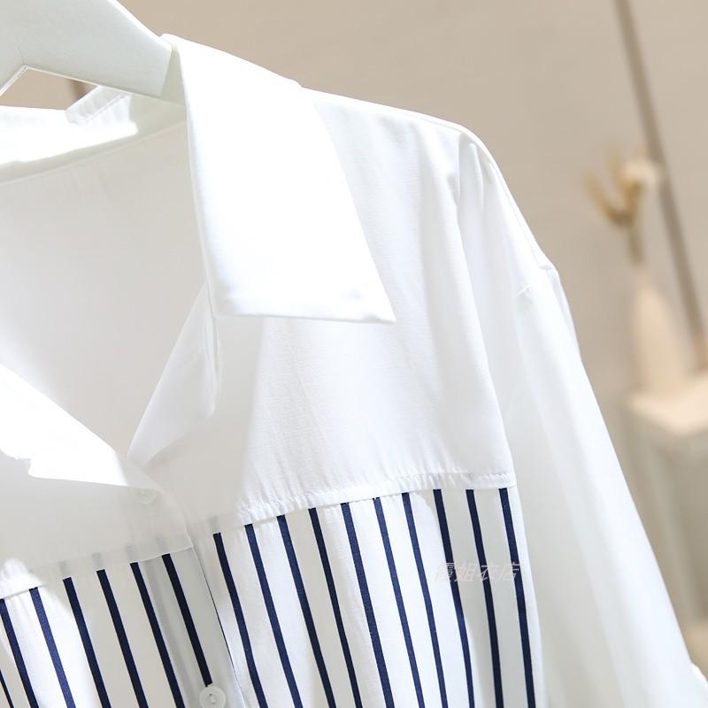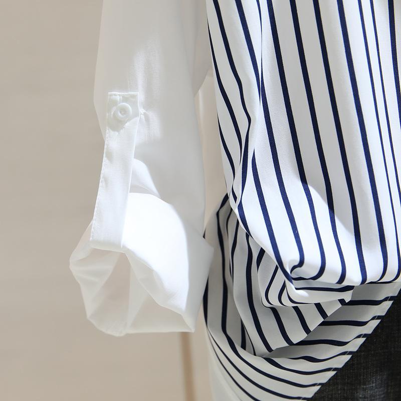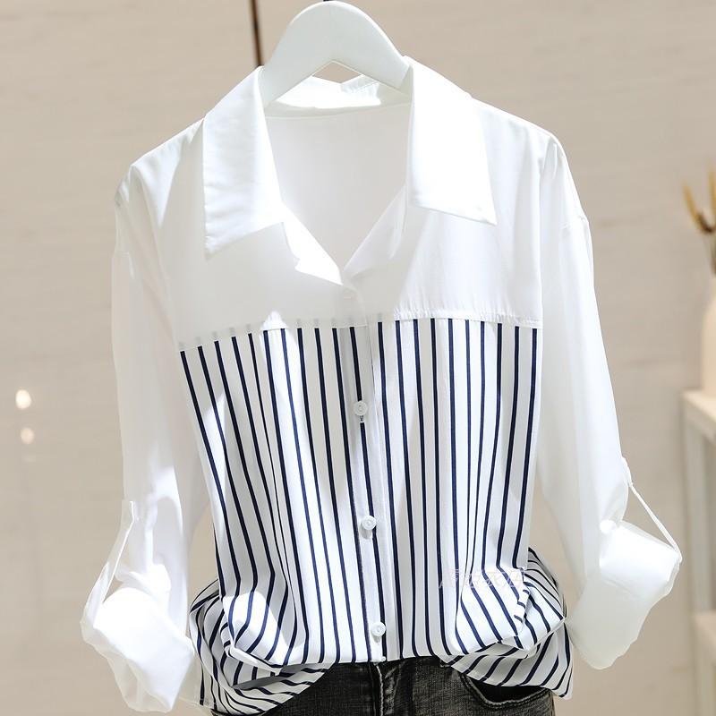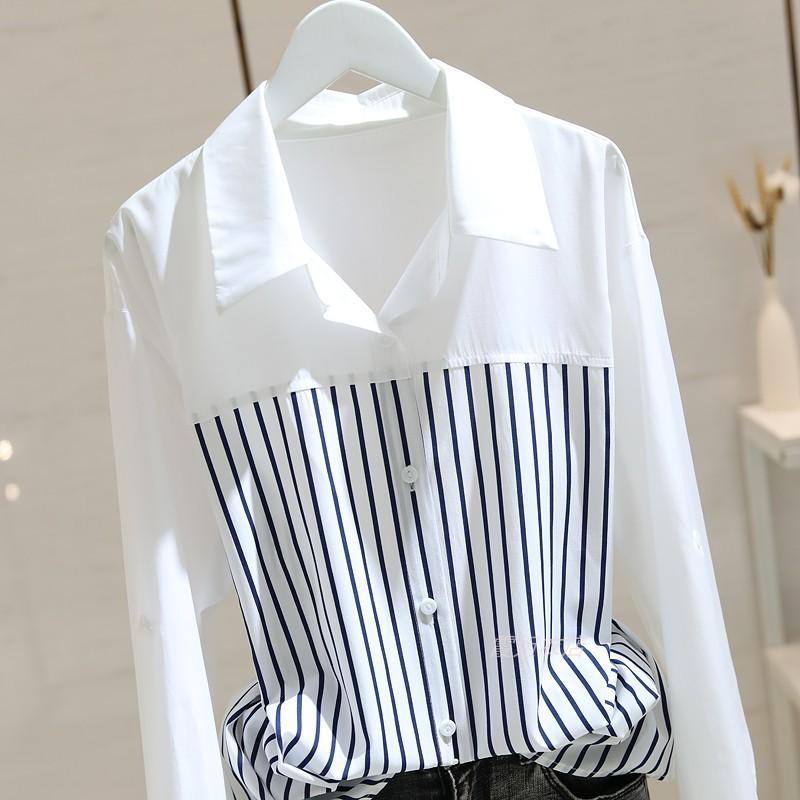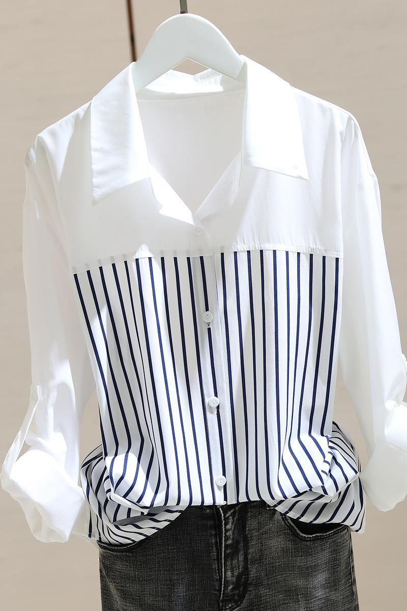 Compra Camisa blanca holgada informal de manga larga con diseño de costura de rayas blancas para mujer, de primavera, a la moda al por mayor en Joom.pro