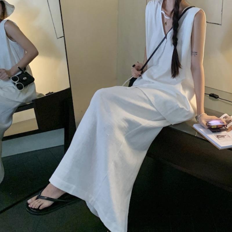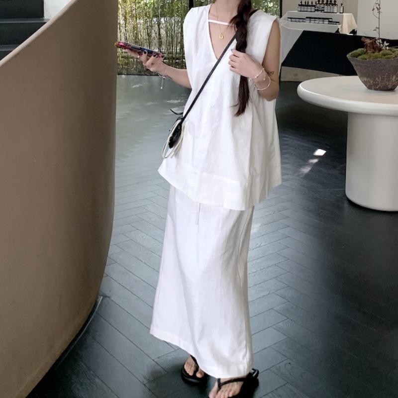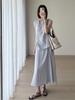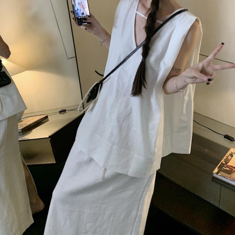Top Chaleco Reversible de Diseño Traje Estilo Lazy para Mujer Verano Cintura Alta Falda con Abertura Conjunto de Dos Piezas Estilo Coreano