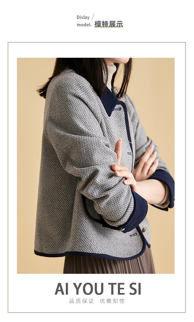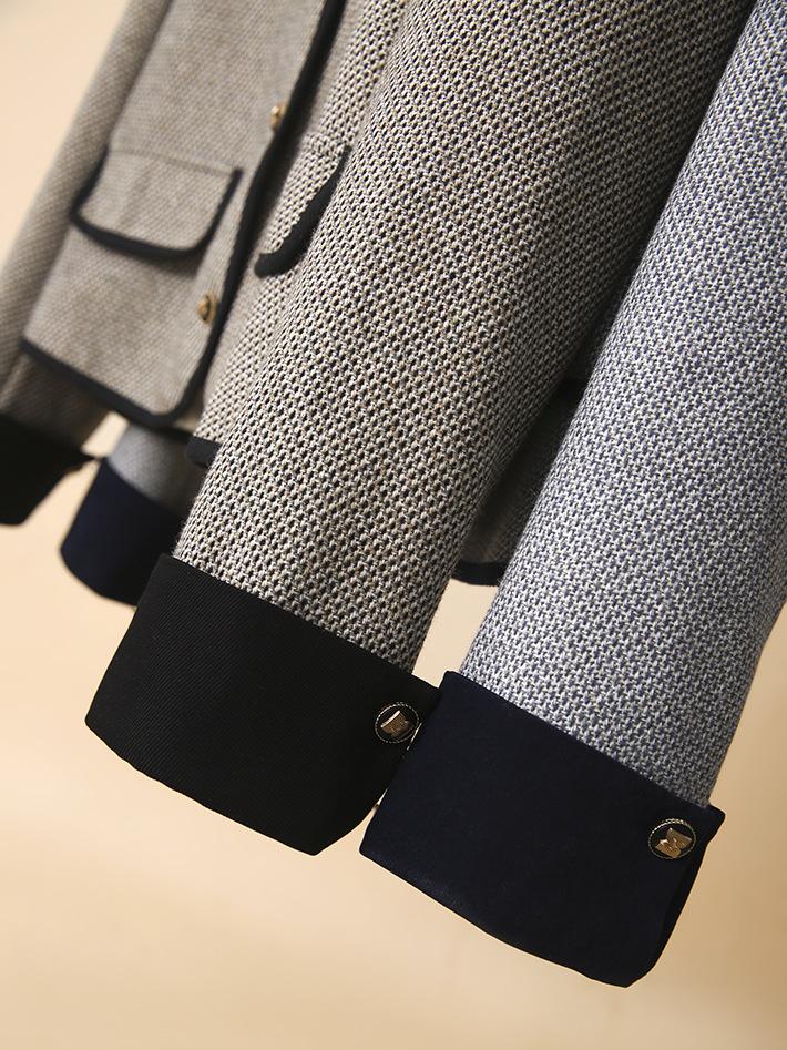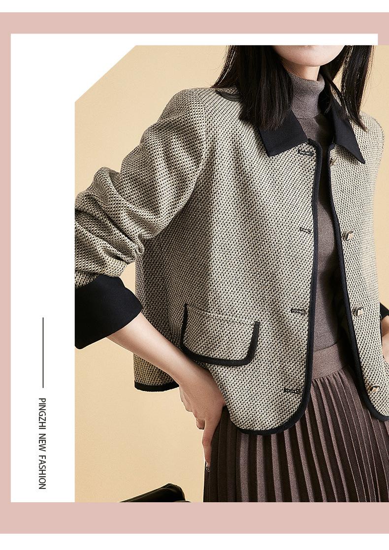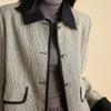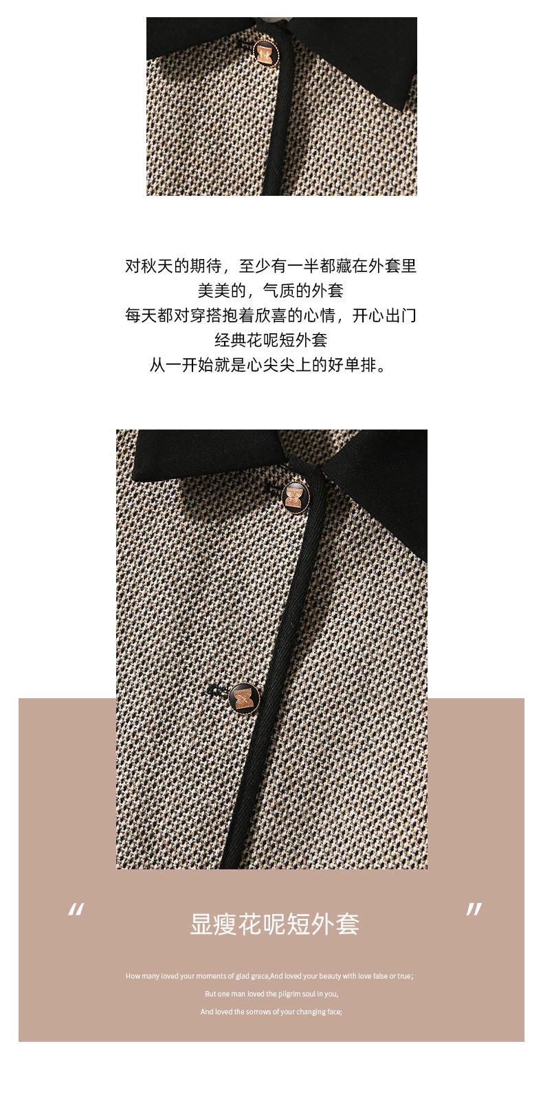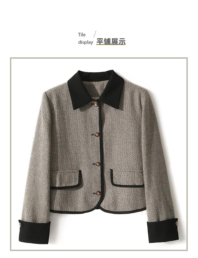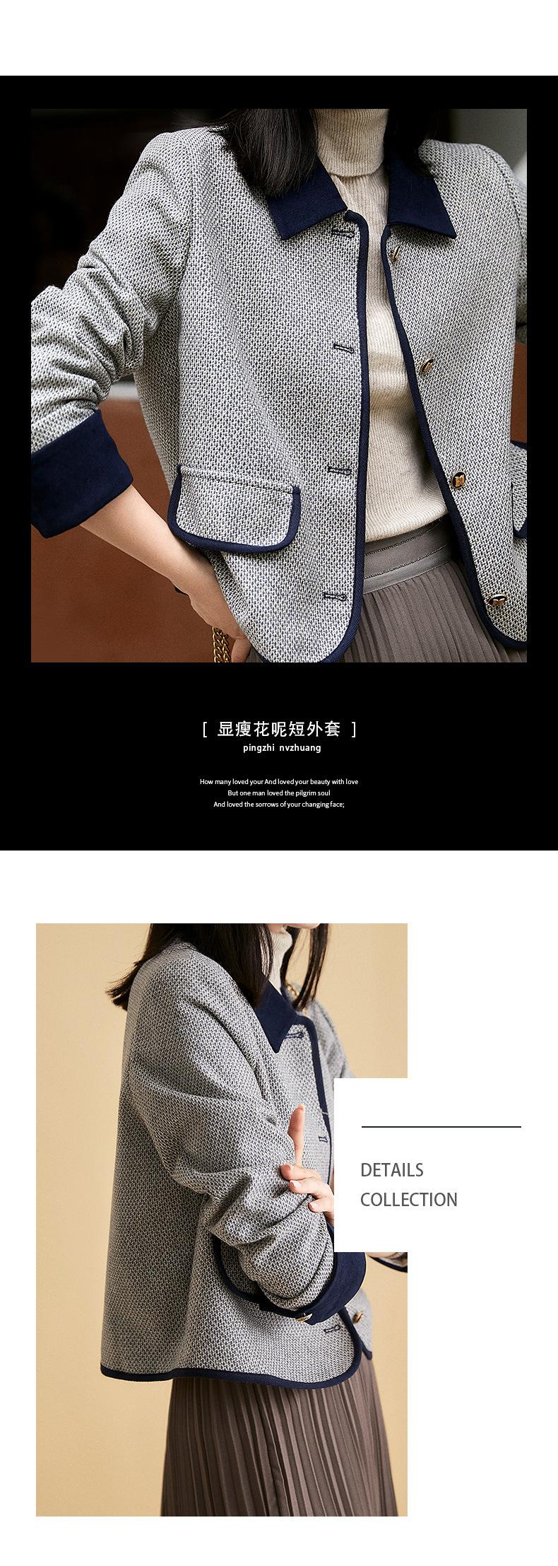 Chaqueta Elegante de Tweed de Lana con un Tacto de Alta Gama, Abrigo Corto con Cuello de Tweed para Mujer, Ropa de Viaje para Otoño, Ropa de Mujer para Primavera y Otoño