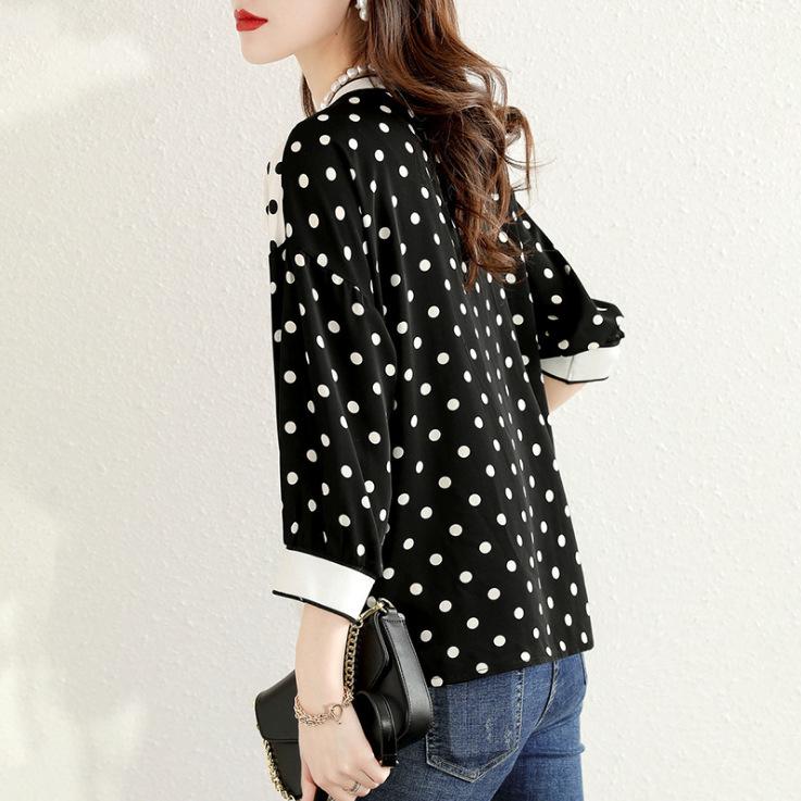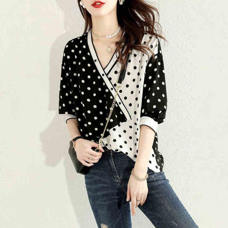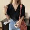 Camisa de Gasa para Mujer Manga Corta 2022 Nuevo Verano Delgada Retro Holgada Estilosa Cuello en V Talla Grande Top para Mujer