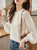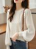 Camiseta de Manga Larga de Malla con Encaje para Mujer Primavera y Otoño 2024 Nuevo Estilo Combinación Casual Camiseta Básica para Mujer