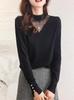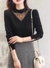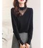 Compra Moda de Primavera, Otoño e Invierno 2024, Suéter de Diseño Chic con Cuello Alto y Parche de Encaje, Camiseta Top de Manga Larga para Usar Debajo, Fácil de Combinar al por mayor en Joom.pro