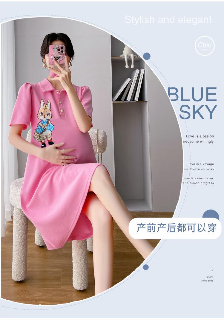 Vestido de traje de verano para mujeres embarazadas Manga corta Nuevo Top Moda de verano Suelto Camiseta de verano Falda Moda Mamá Caliente
