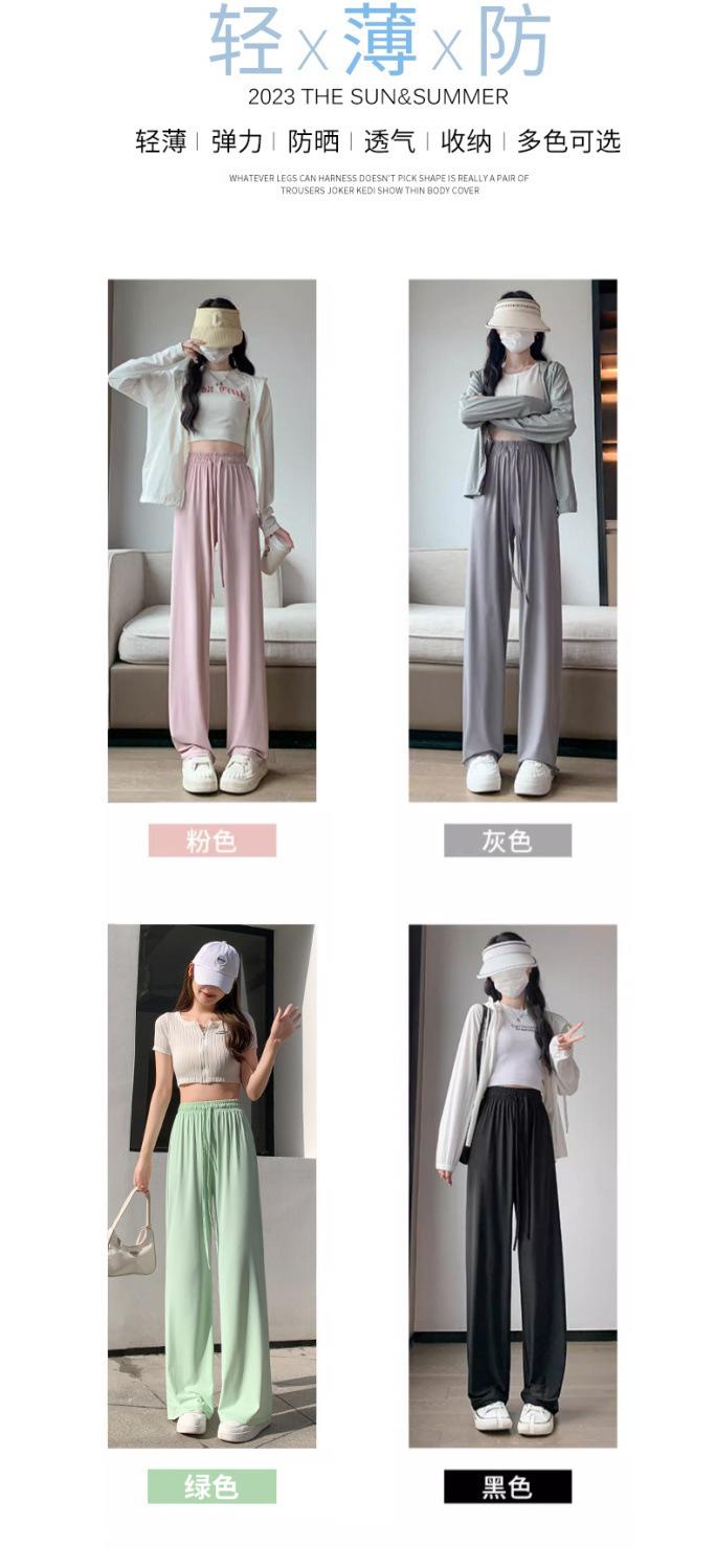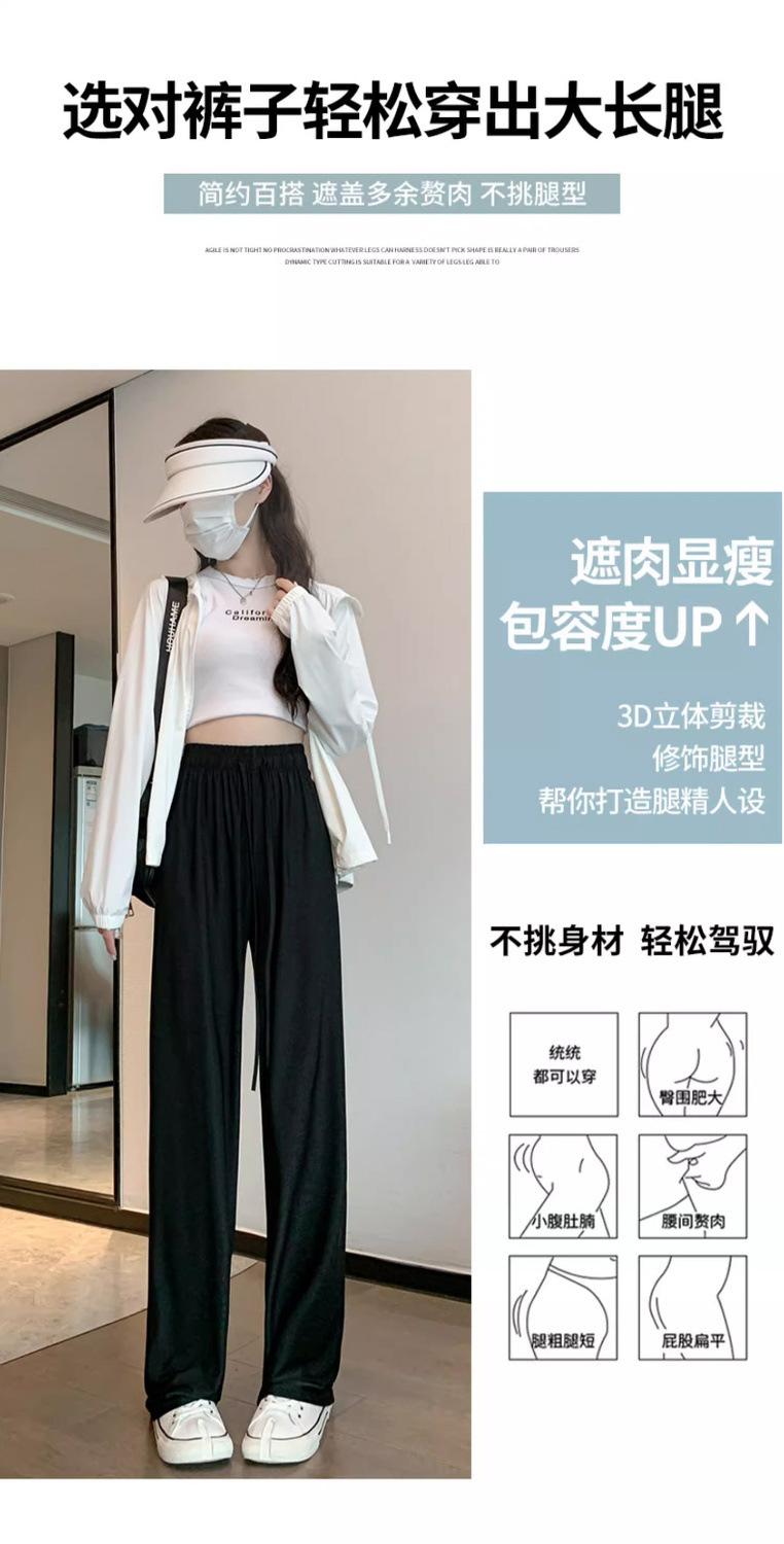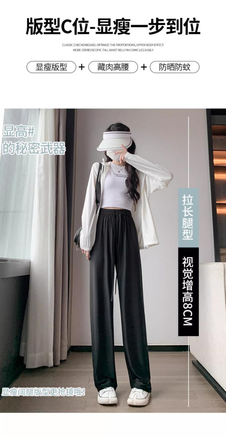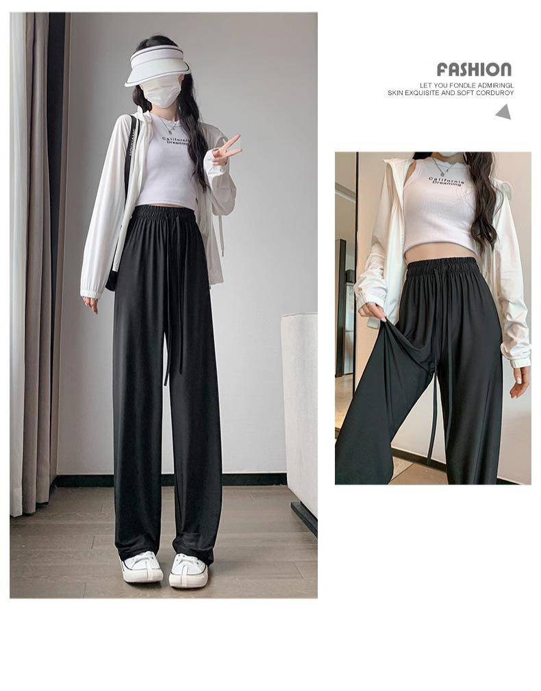 Pantalones anchos negros con protección solar para mujer, de verano, finos, de cintura alta, holgados, de seda helada, rectos, edición estrecha, deportivos e informales.