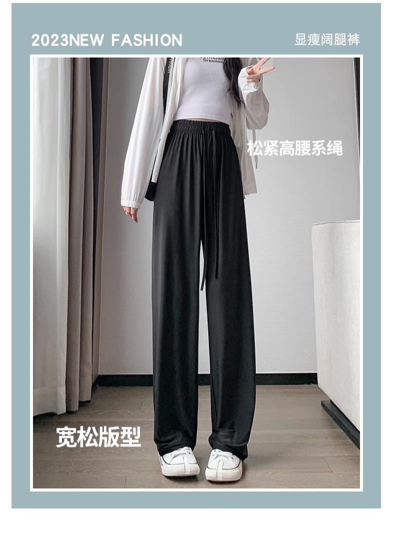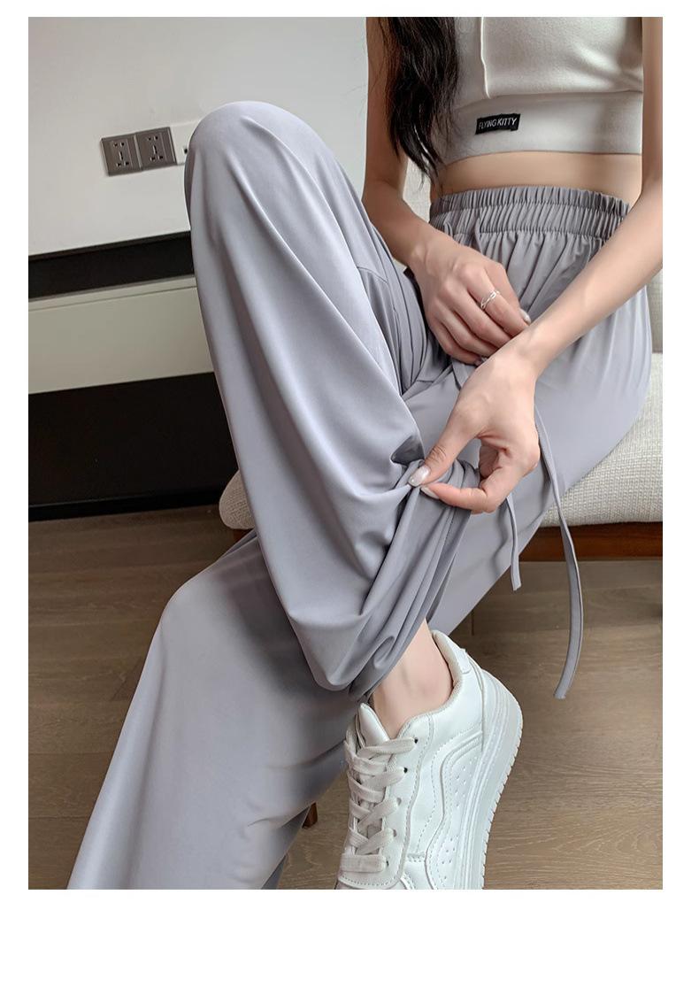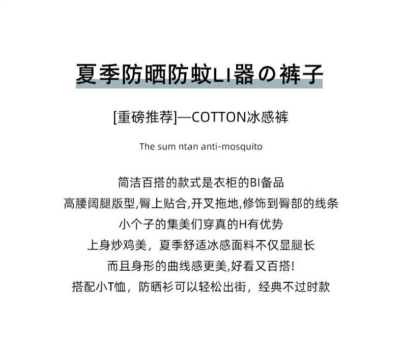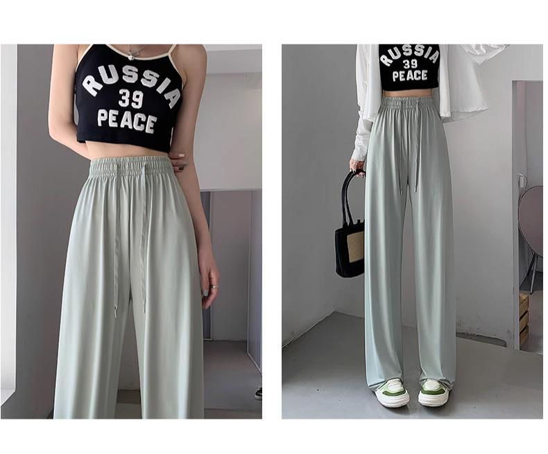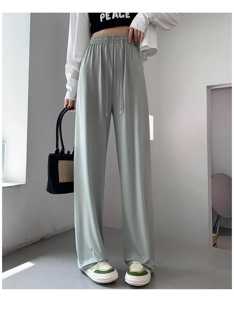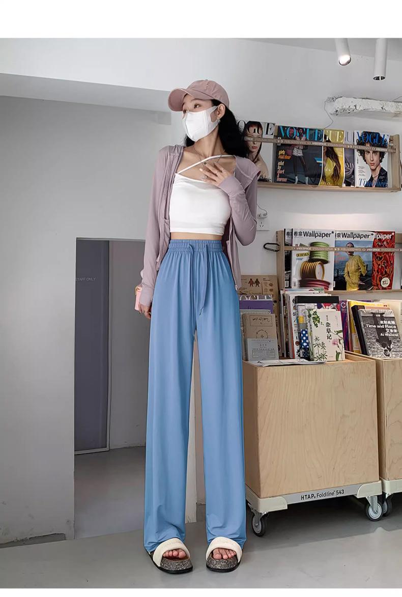 Pantalones anchos negros con protección solar para mujer, de verano, finos, de cintura alta, holgados, de seda helada, rectos, edición estrecha, deportivos e informales.