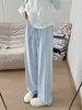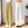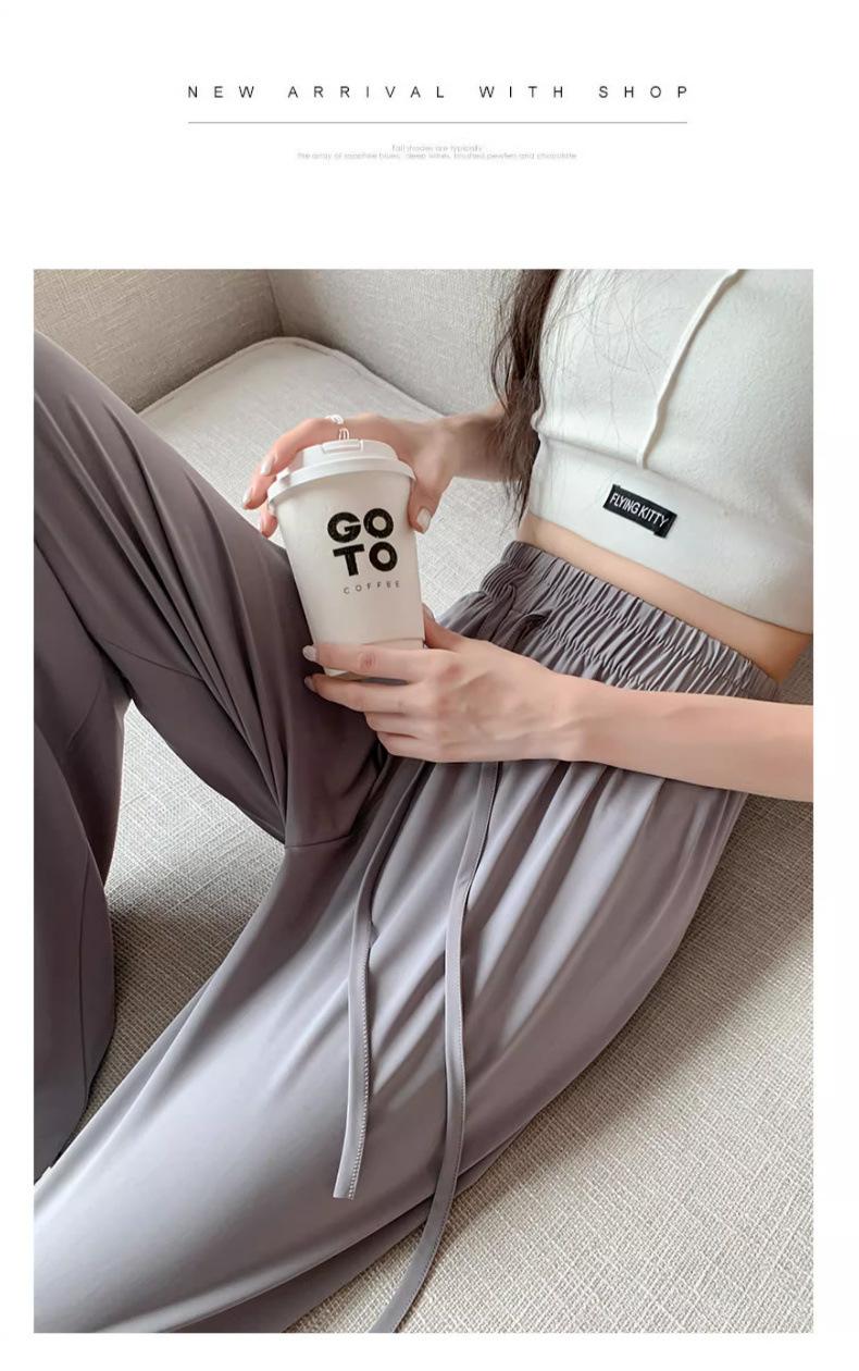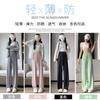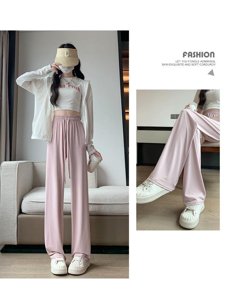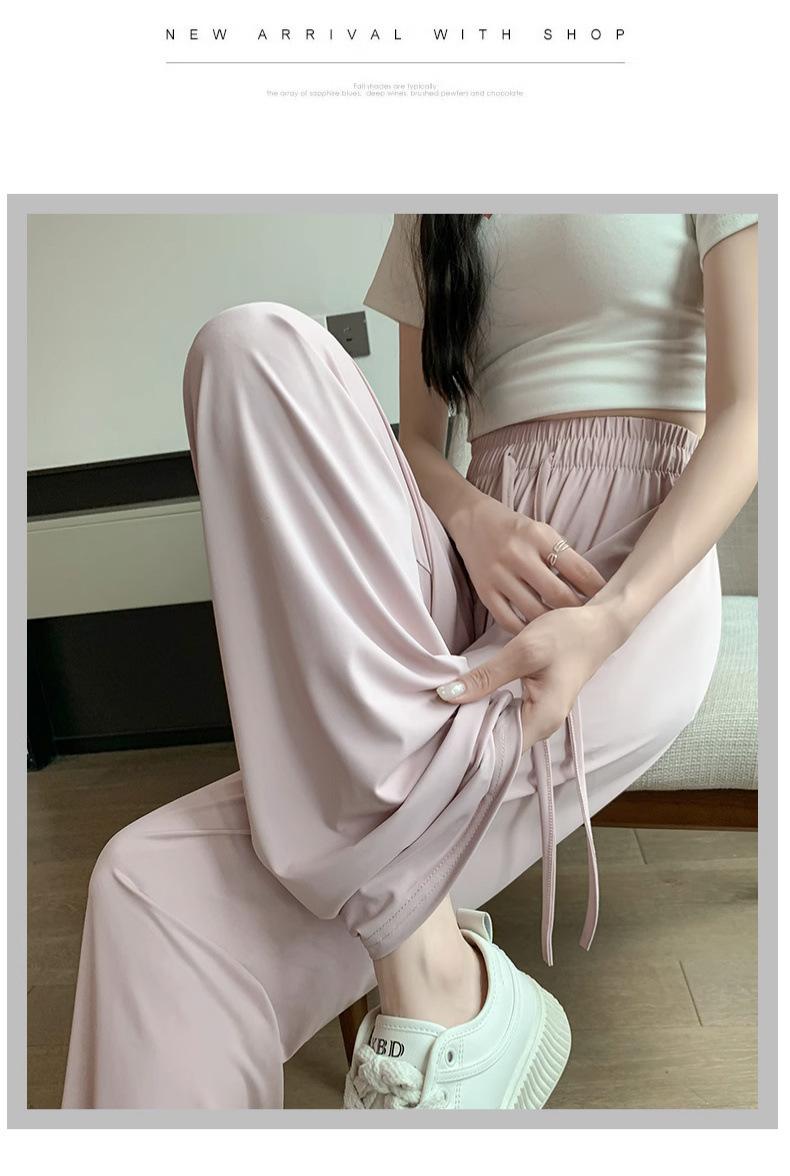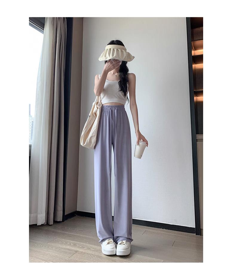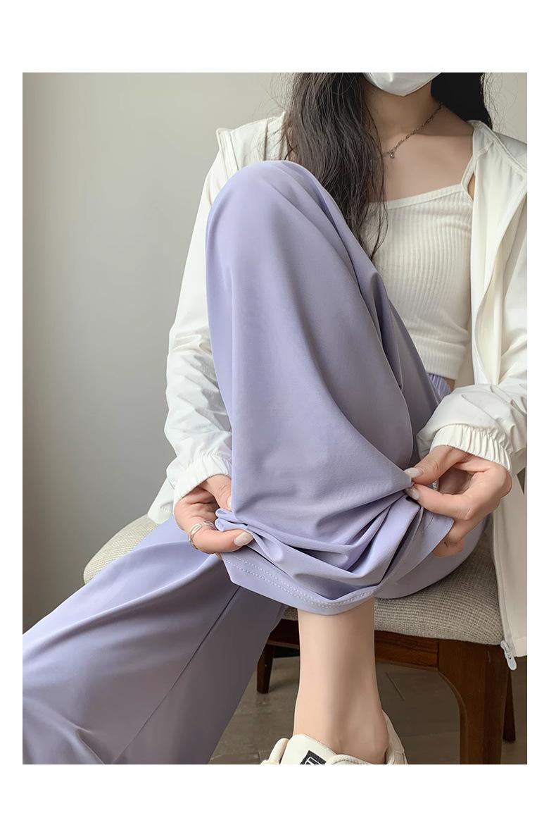 Pantalones anchos negros con protección solar para mujer, de verano, finos, de cintura alta, holgados, de seda helada, rectos, edición estrecha, deportivos e informales.