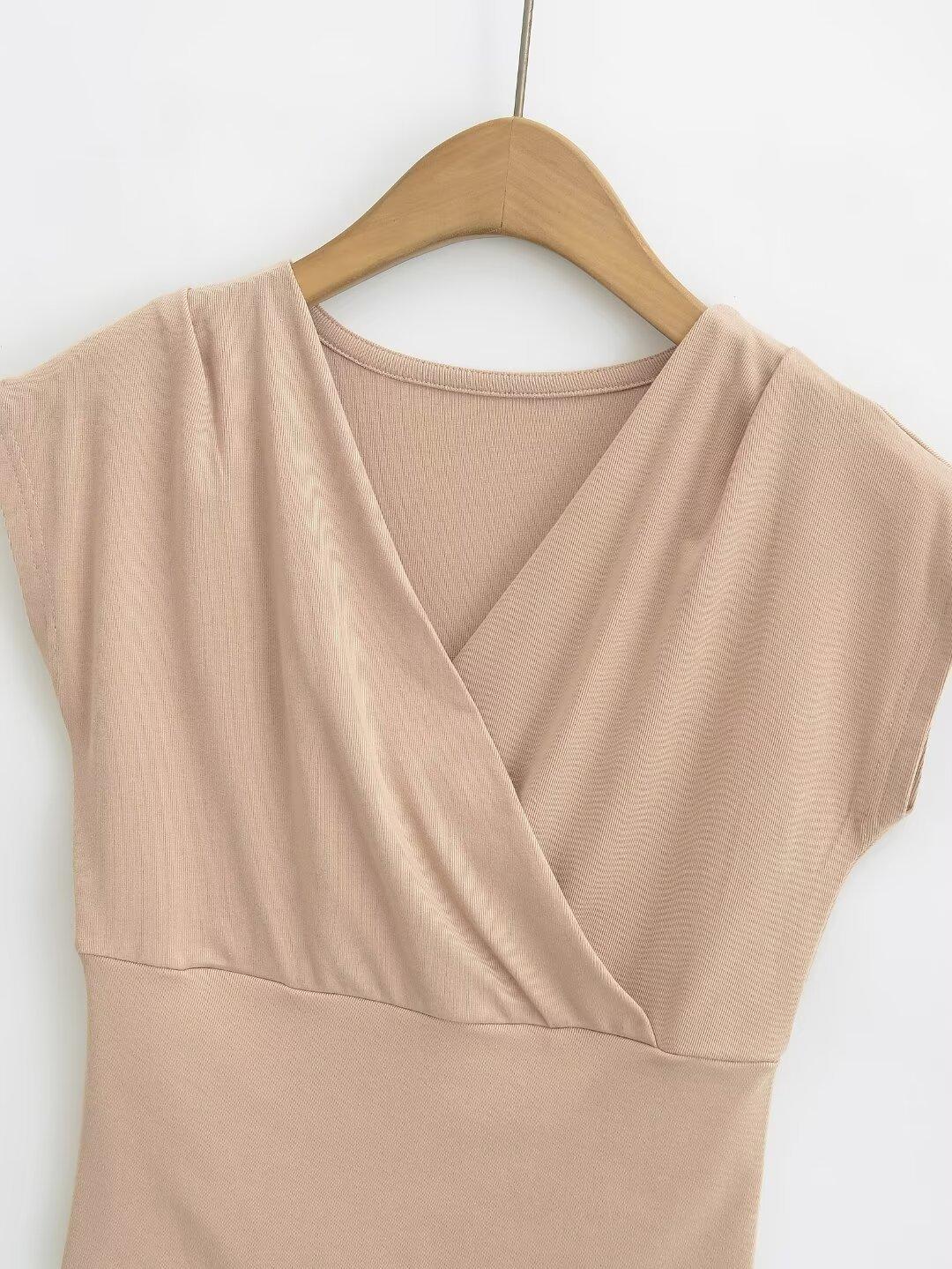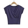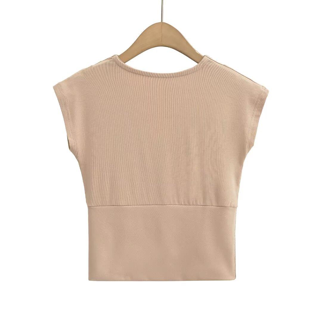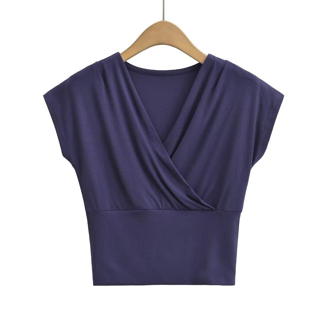 Camiseta ajustada con escote en V y cintura cruzada en el pecho para mujer, elegante y a la moda, combinable con todo, S20967