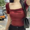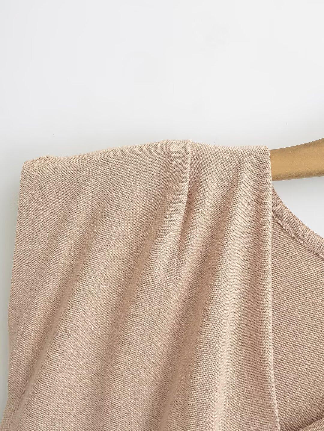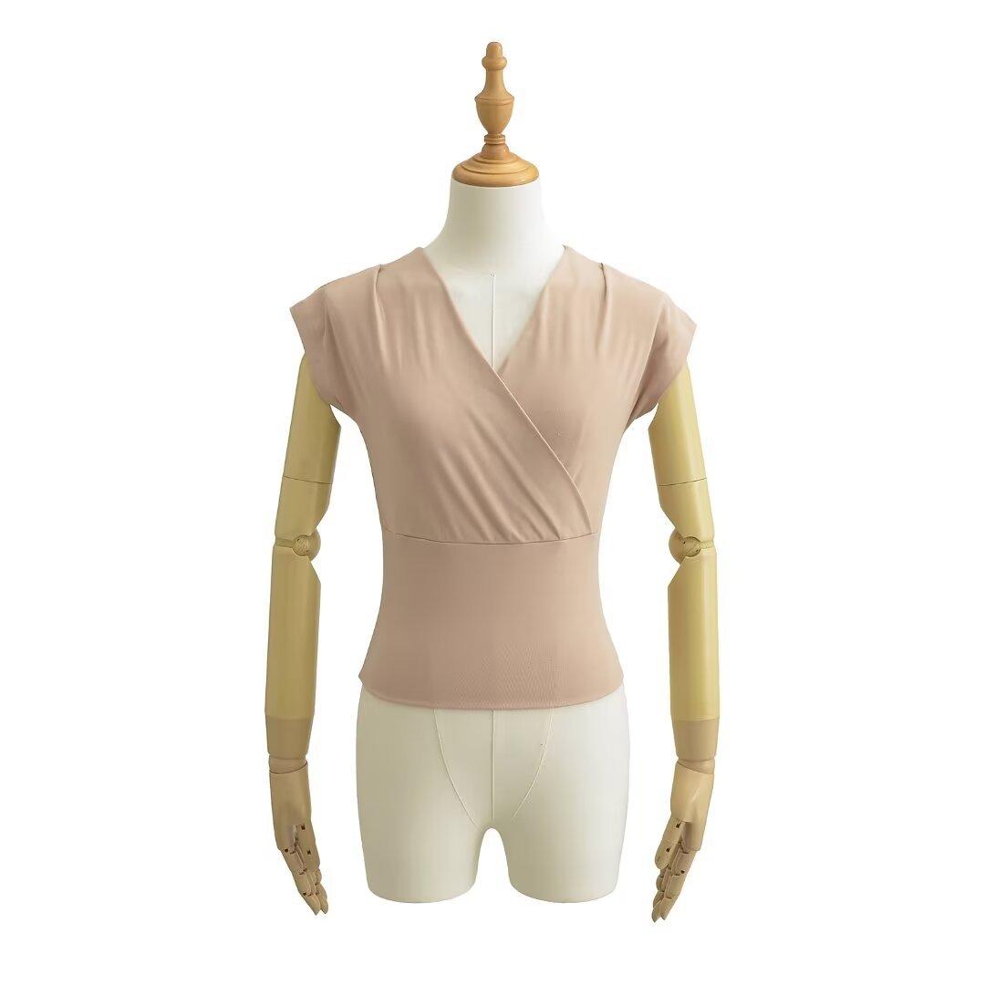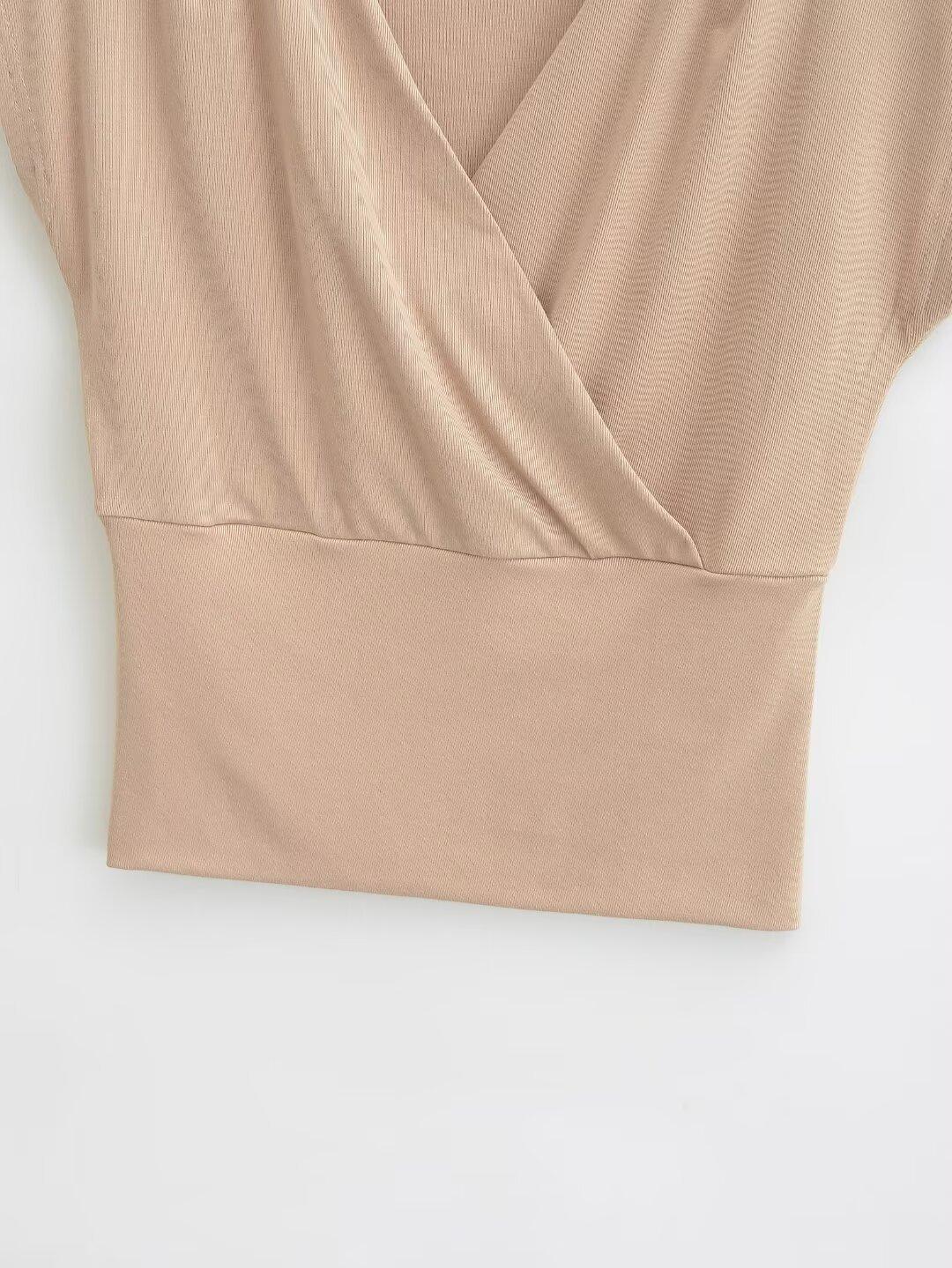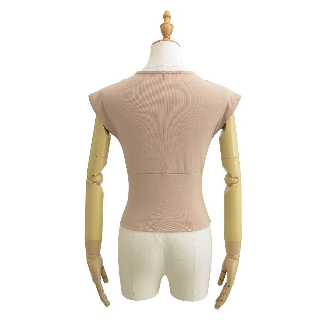 Camiseta ajustada con escote en V y cintura cruzada en el pecho para mujer, elegante y a la moda, combinable con todo, S20967