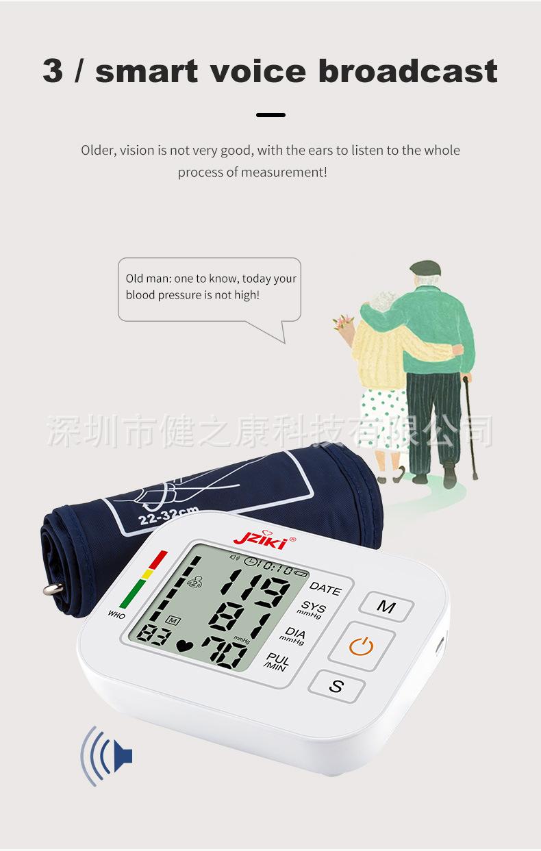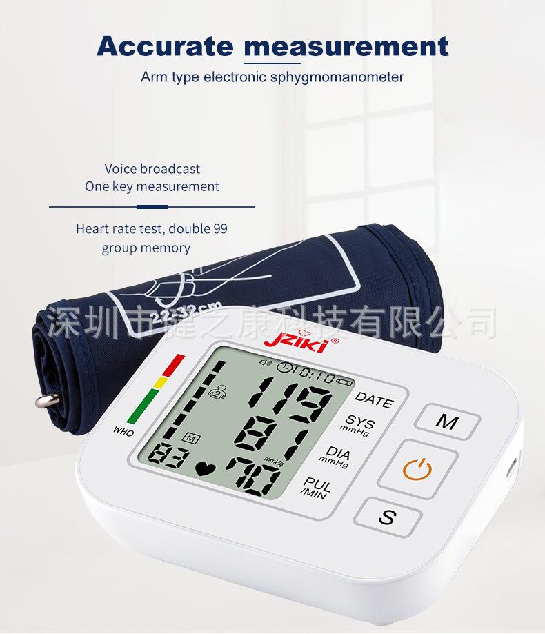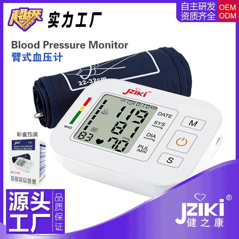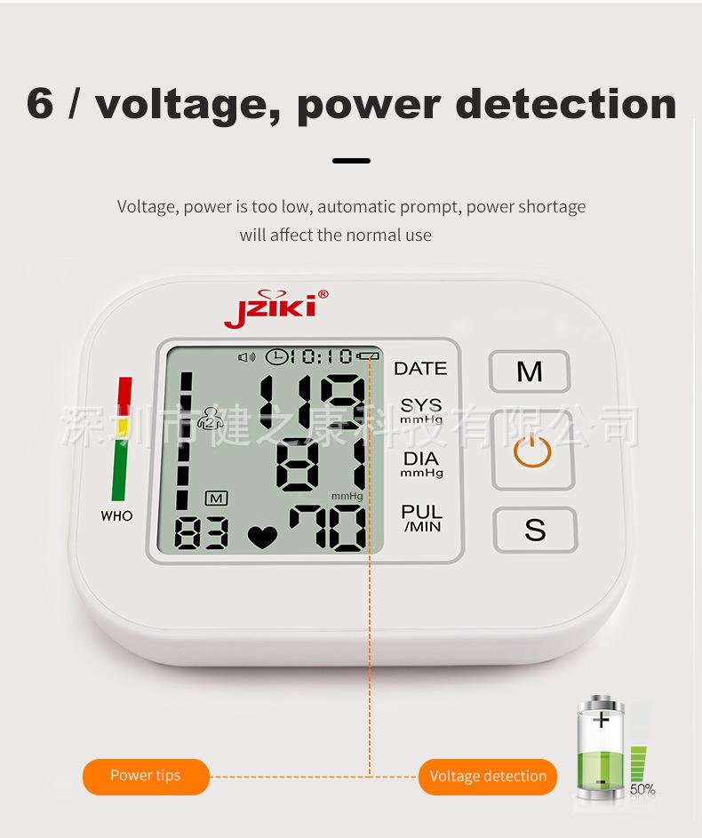 JZIKI fabrica un esfigmomanómetro electrónico transfronterizo con brazo de comercio exterior inglés completo, medidor de presión arterial, medidor de presión arterial