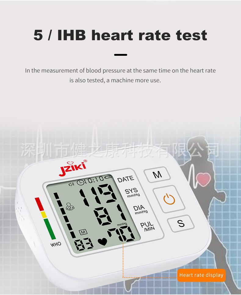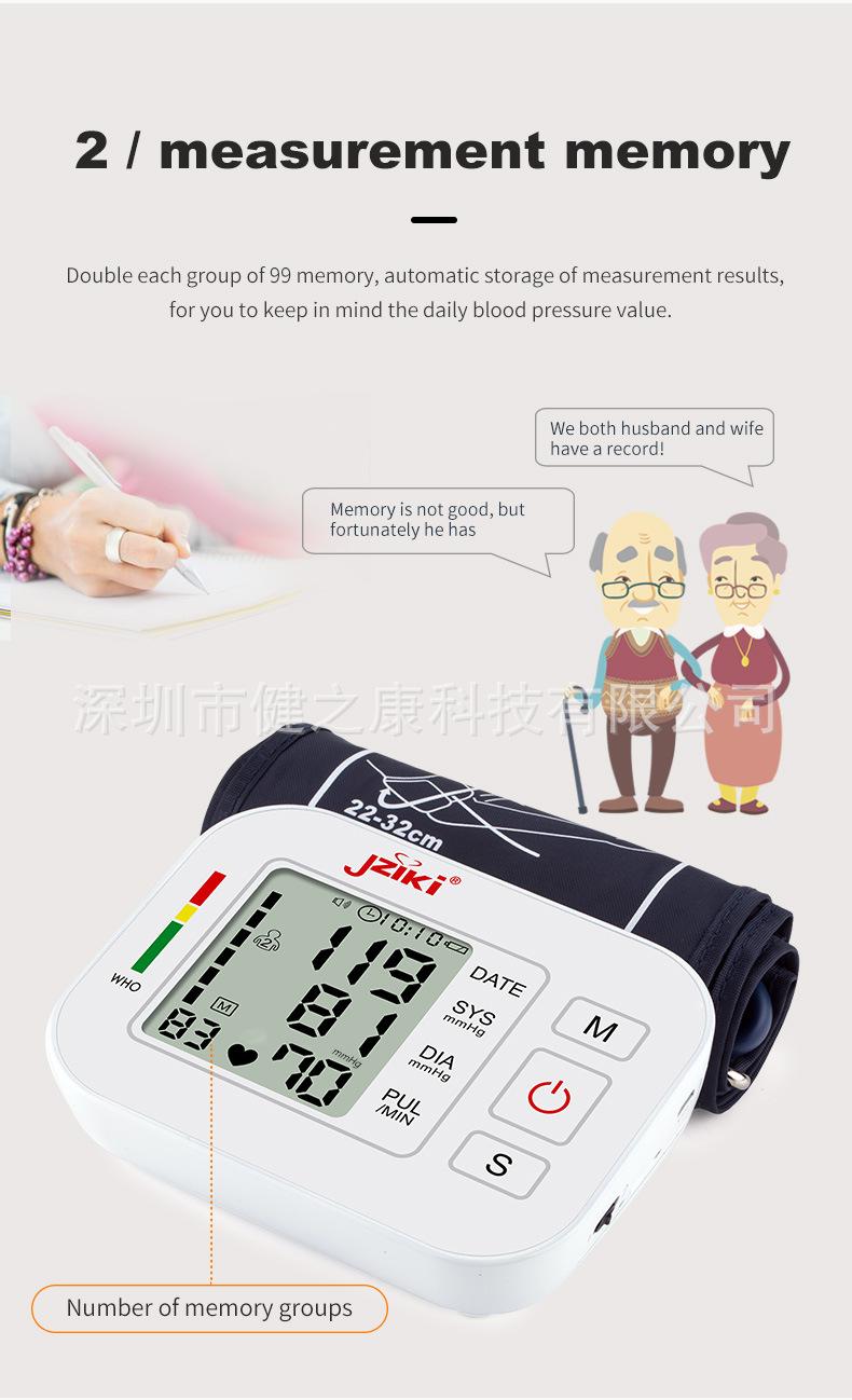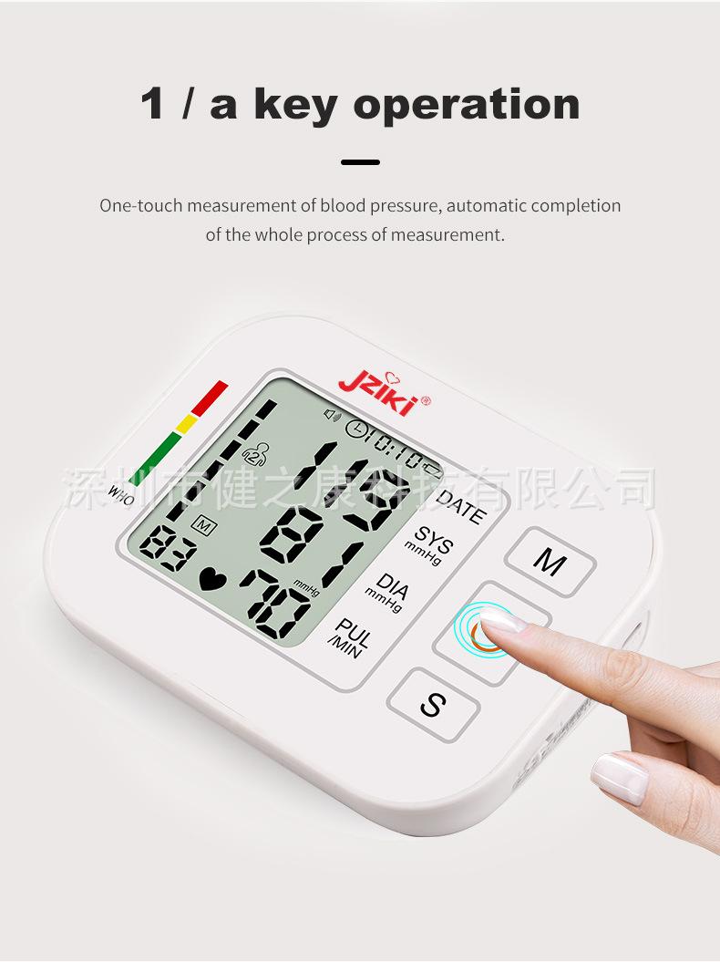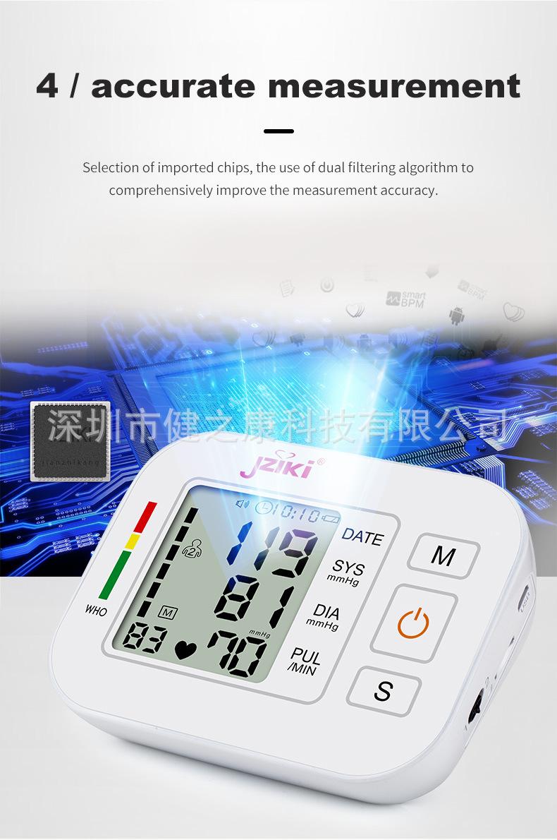 JZIKI fabrica un esfigmomanómetro electrónico transfronterizo con brazo de comercio exterior inglés completo, medidor de presión arterial, medidor de presión arterial