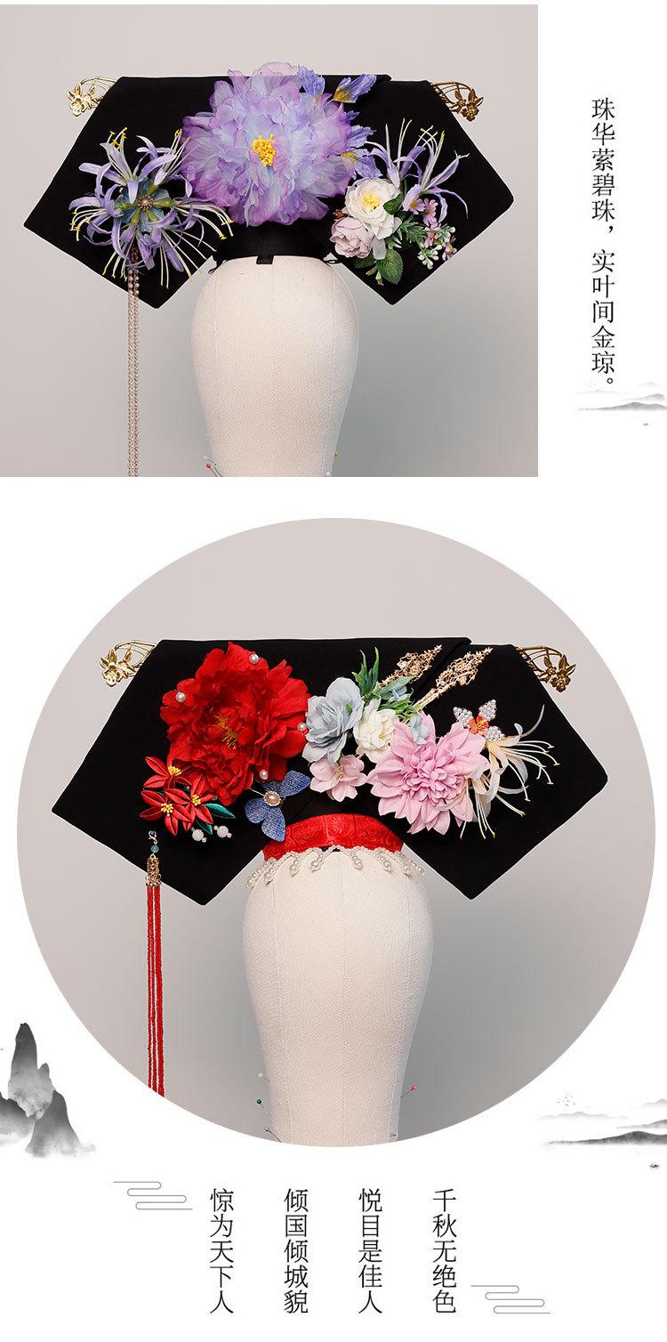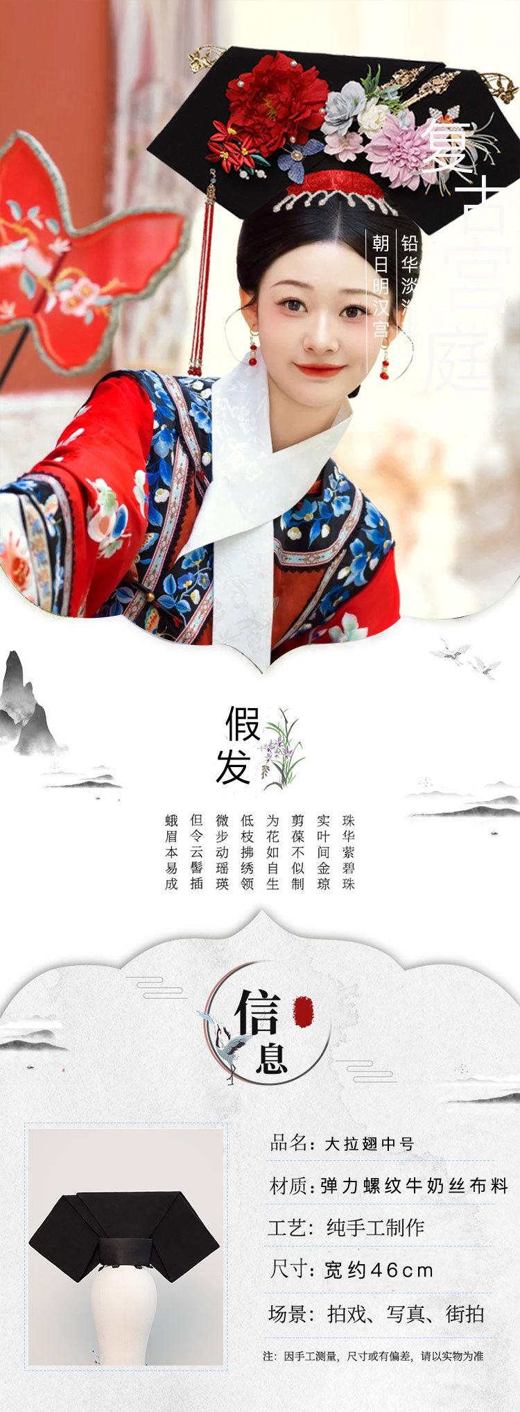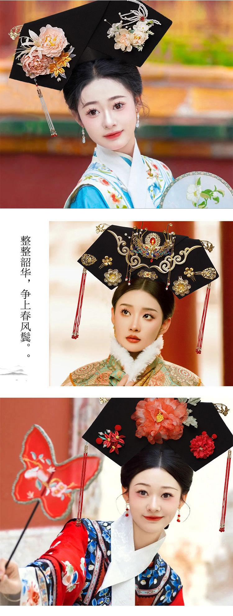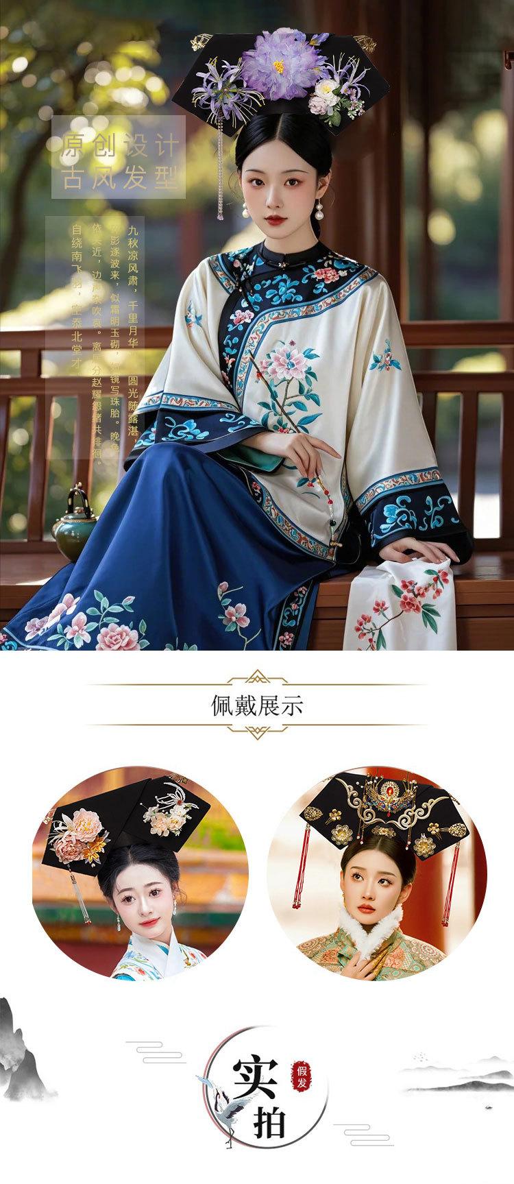 Peluca antigua de la dinastía Qing, palacio, bandera Gege, accesorios para el cabello, harén, concubina imperial, emperatriz, alas de Rita de lujo, tocados