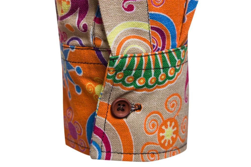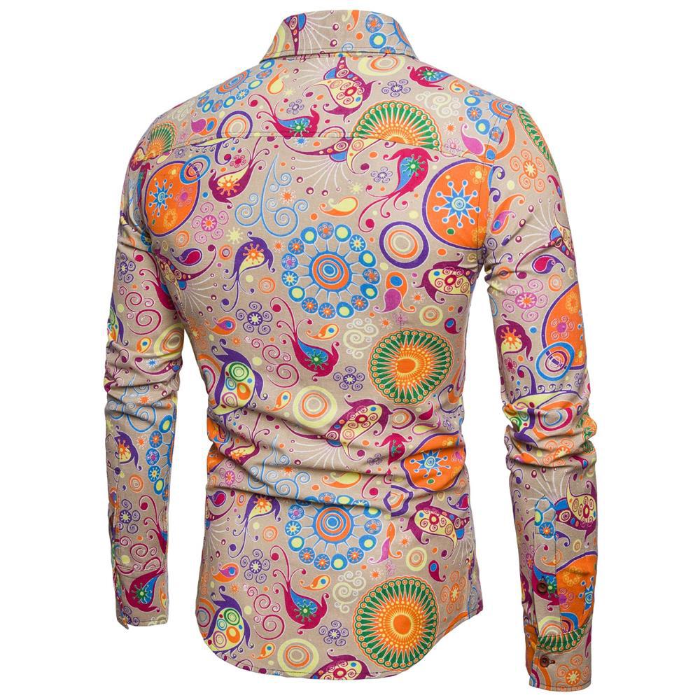 Comercio Exterior Transfronterizo 2024 Nueva Moda para Hombre Camisa Casual de Manga Larga Estampada para Hombre Camisa Colorida Slim de Lino para Hombre
