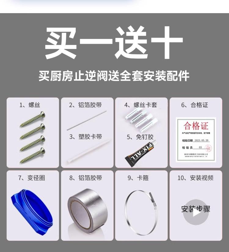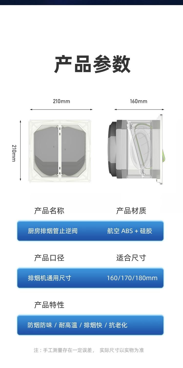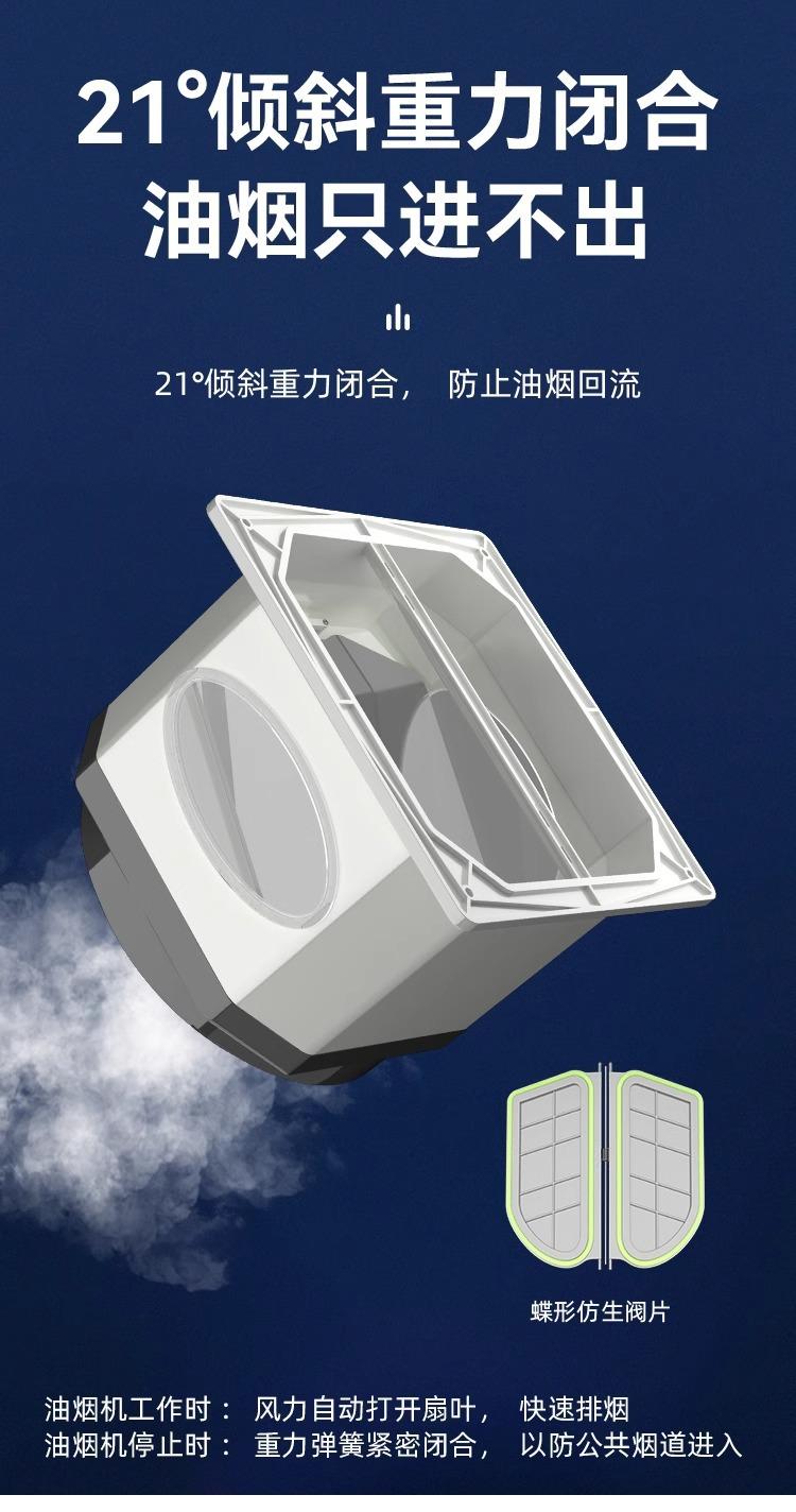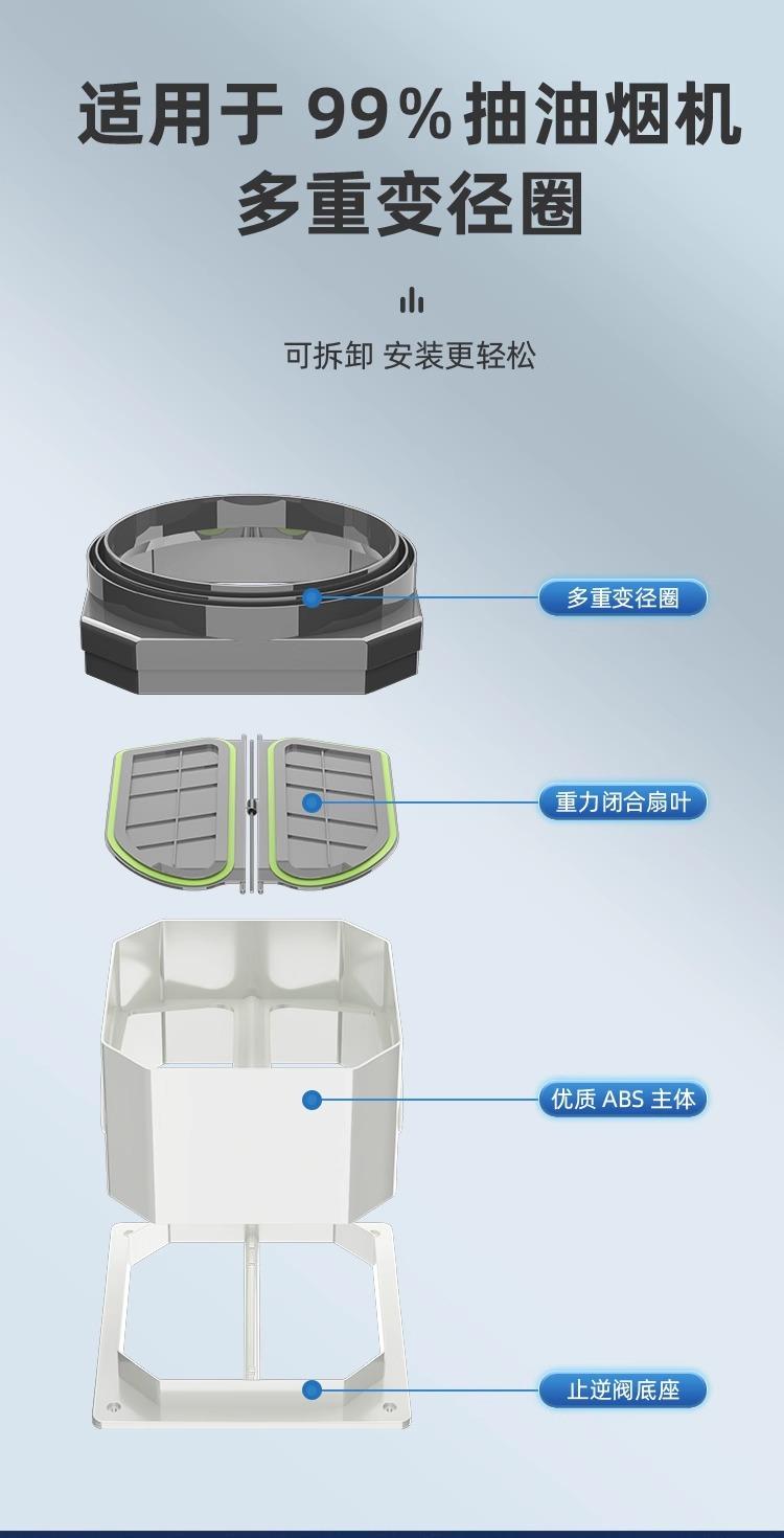 Válvula de retención de cocina, especial para conductos de escape de campanas extractoras, válvula de retención de diámetro variable, válvula antihumo Treasure, válvula de retención de humo unidireccional.