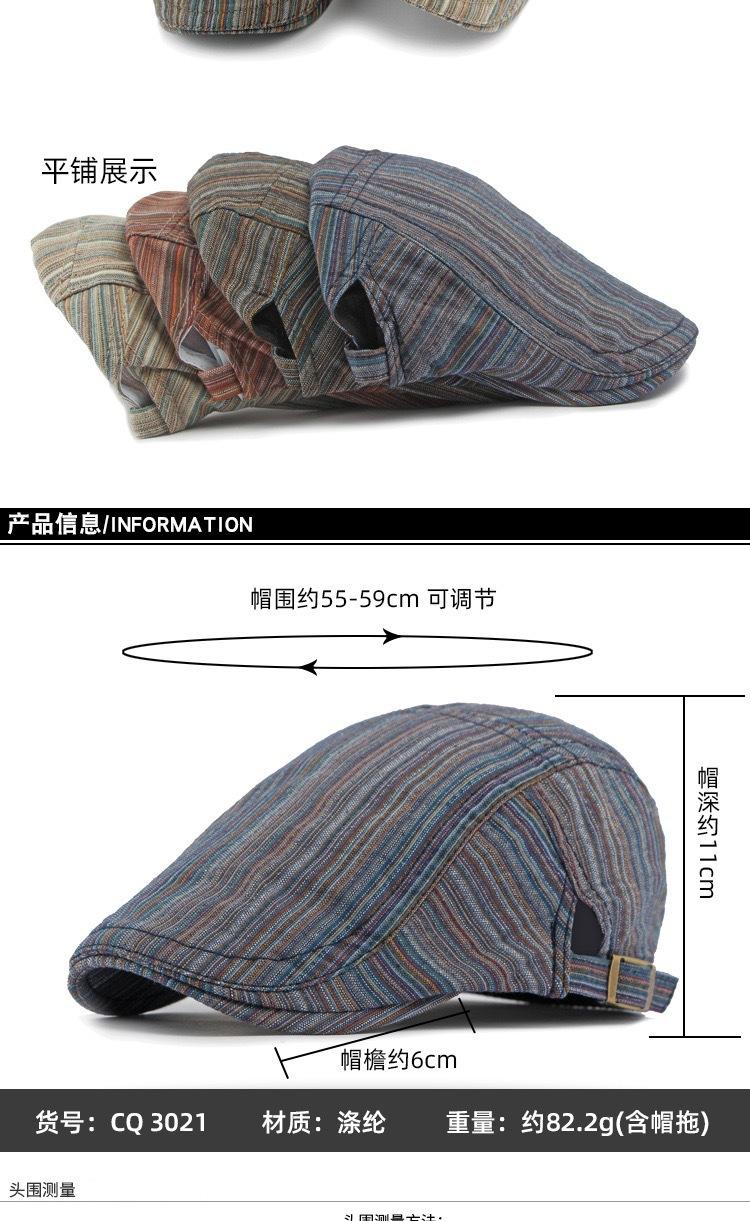 Boina de verano para mujer, nueva, fina, transpirable, a rayas, estilo británico, estilo retro, para exteriores, para hombre