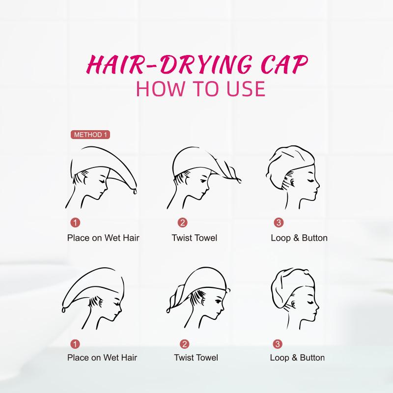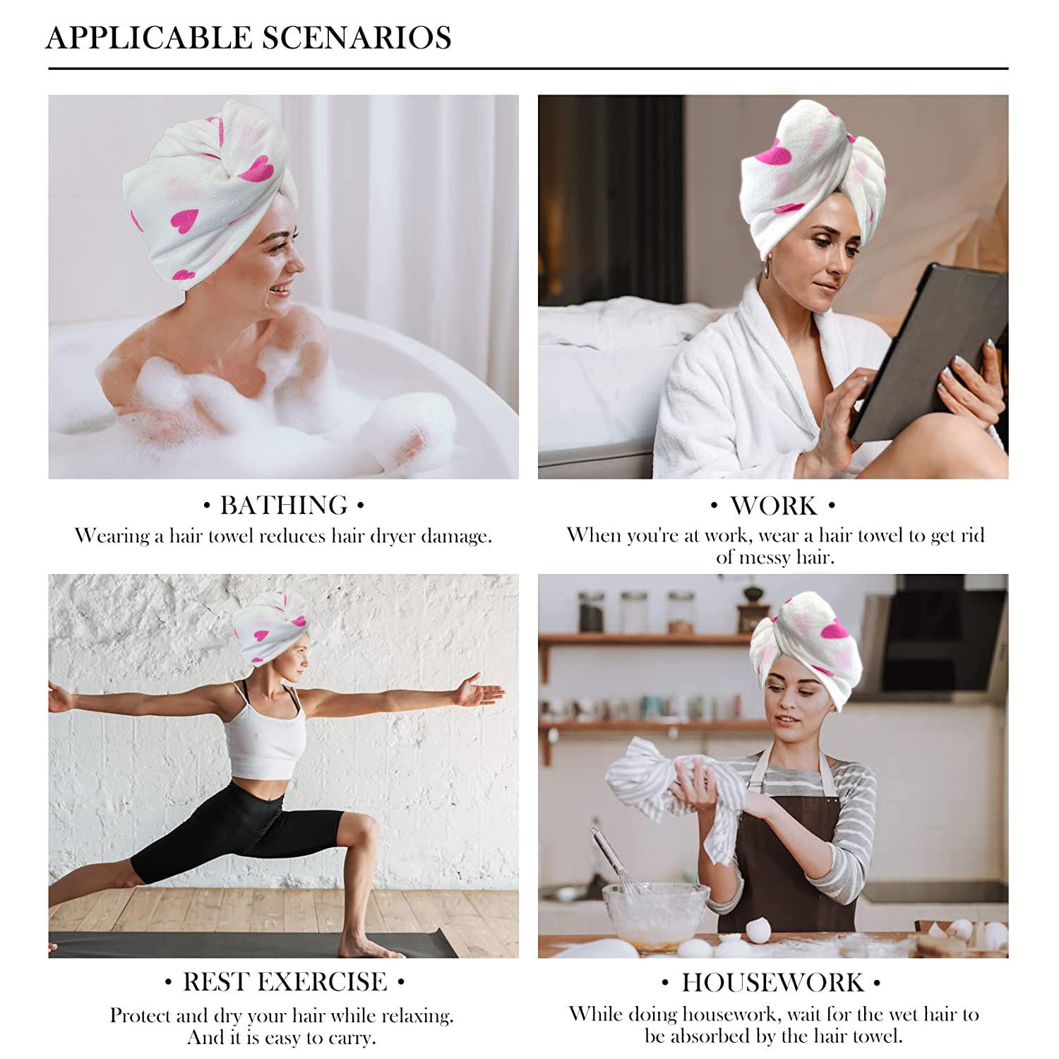 Toallitas para el cabello de secado rápido y absorbentes de agua para mujer, gorro de ducha, champú y toalla de secado rápido.