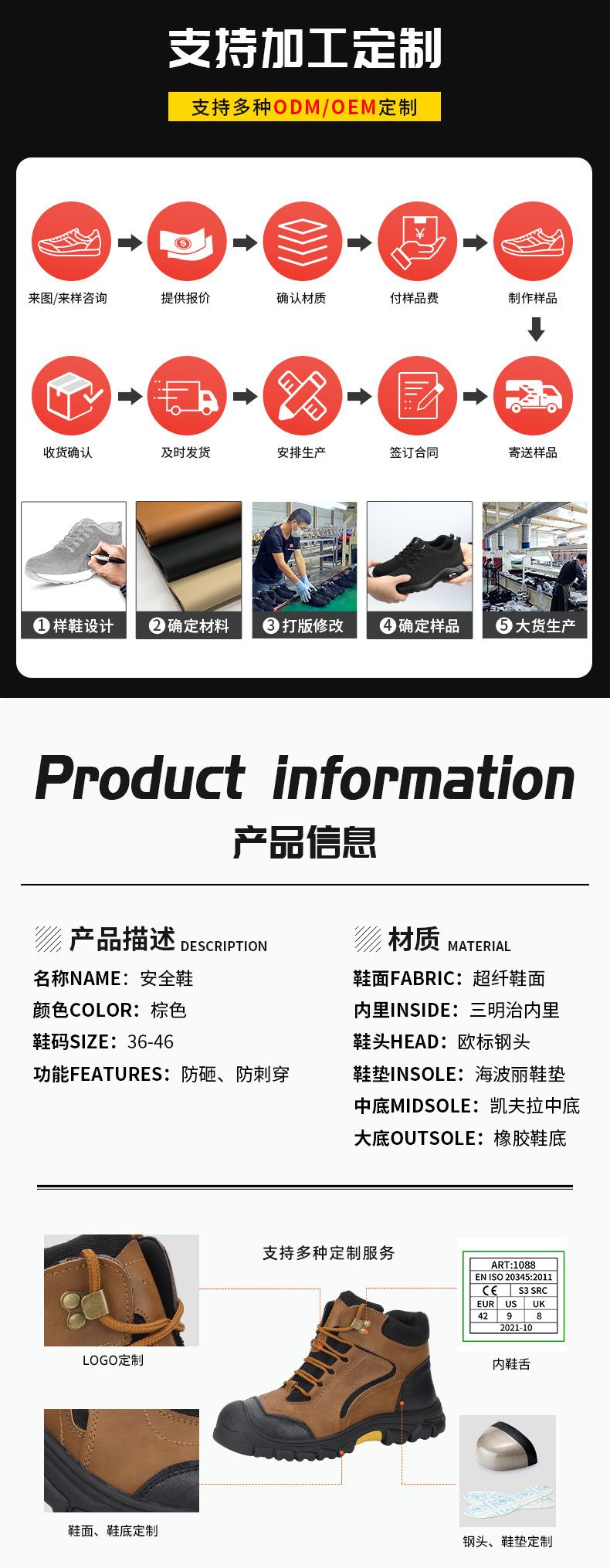Calzado de protección laboral personalizado, antigolpes, antipinchazos y antideslizante, con puntera de acero, calzado de seguridad de caña alta para hombre, venta al por mayor.