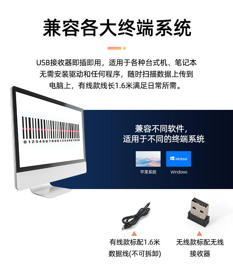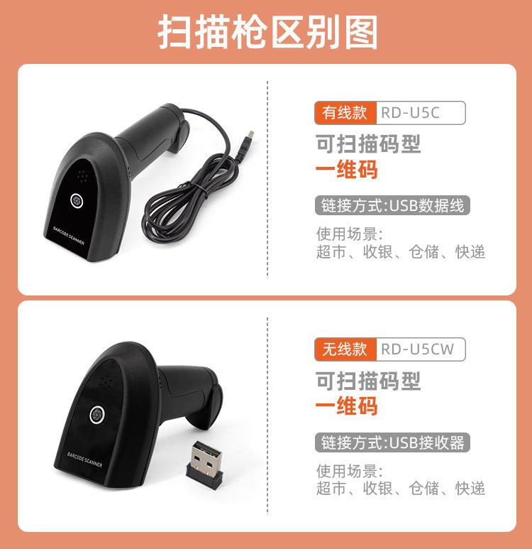 Escáner inalámbrico bidimensional con cable y Bluetooth, escáner de código de barras, escáner exprés para caja registradora de supermercado U5CW
