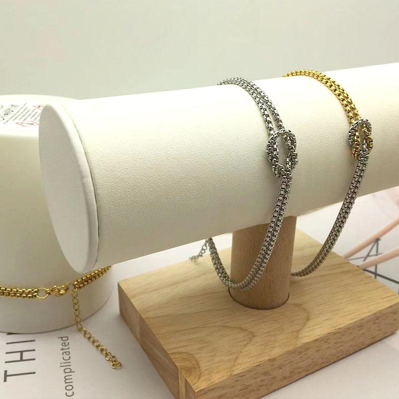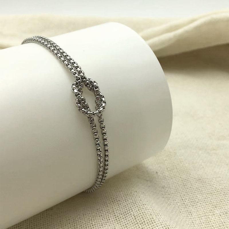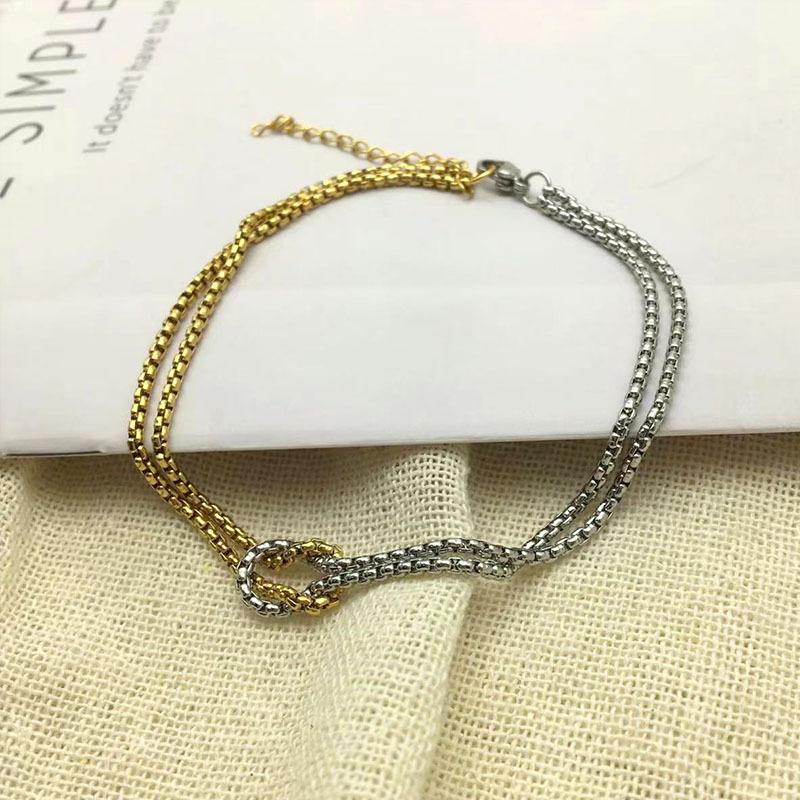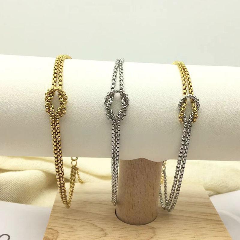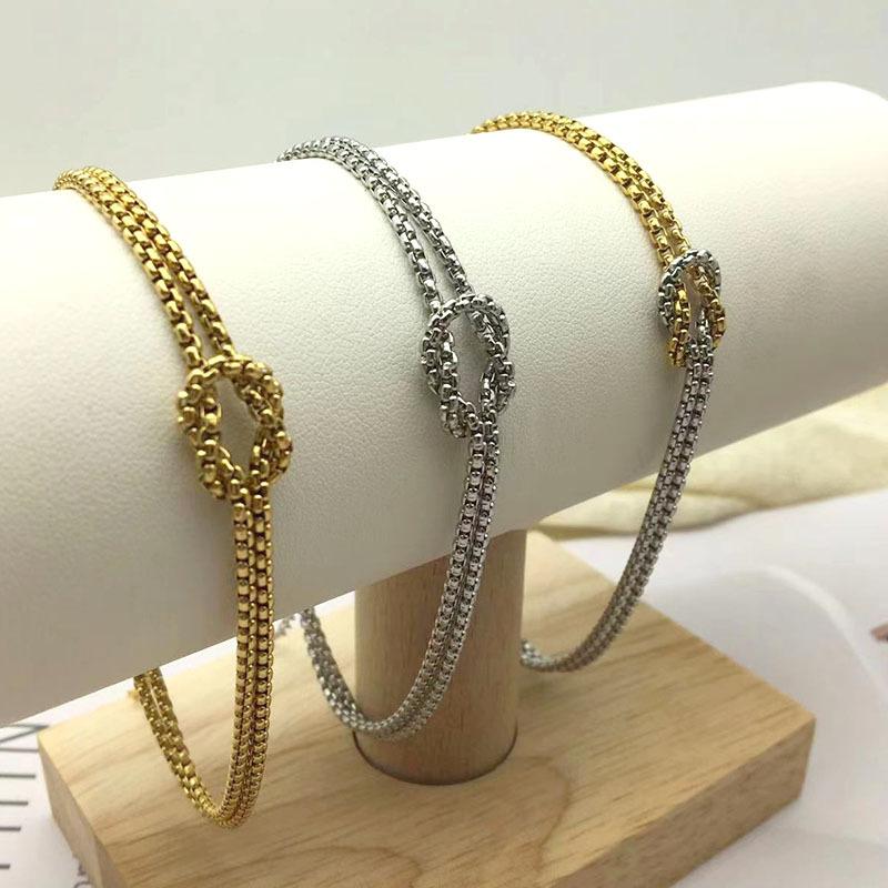 Pulsera geométrica de nudo de sección transversal europea y americana transfronteriza para mujer, diseño de nicho, sentido del diseño, acero de titanio chapado en oro, sin color, joyería de mano