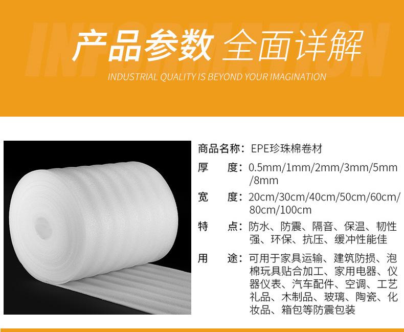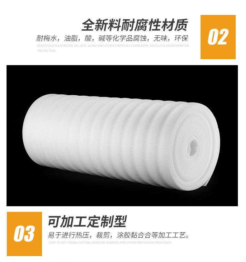 Película de embalaje de algodón perlado EPE a prueba de golpes, personalizada, anticolisión e irrompible, con relleno de espuma de algodón y rebobinado sin núcleo.