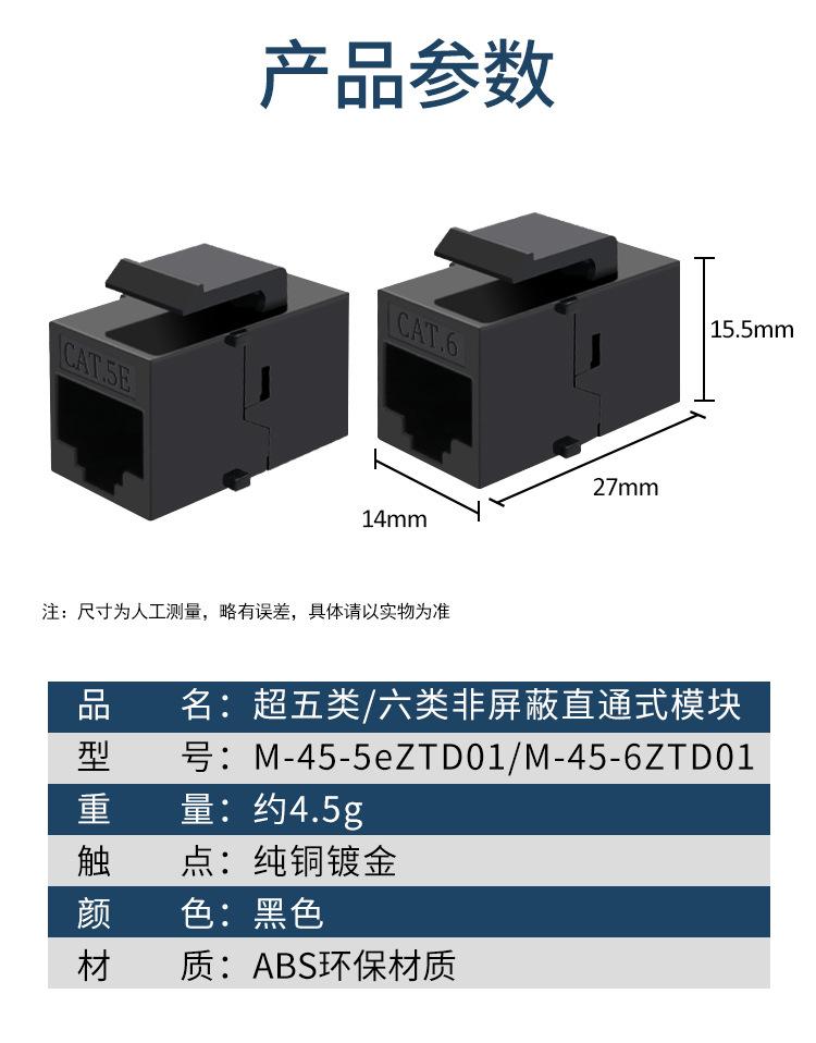Categoría 5E 6 Cat5E/6 Módulo de Cabeza Pasante Sin Blindaje Extensión de Cable de Red Gigabit Corto Módulo de Red