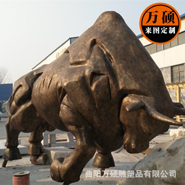 Escultura de toro de Wall Street de fibra de vidrio para exteriores, imitación de cobre, animal de cobre fundido, adorno decorativo para jardín