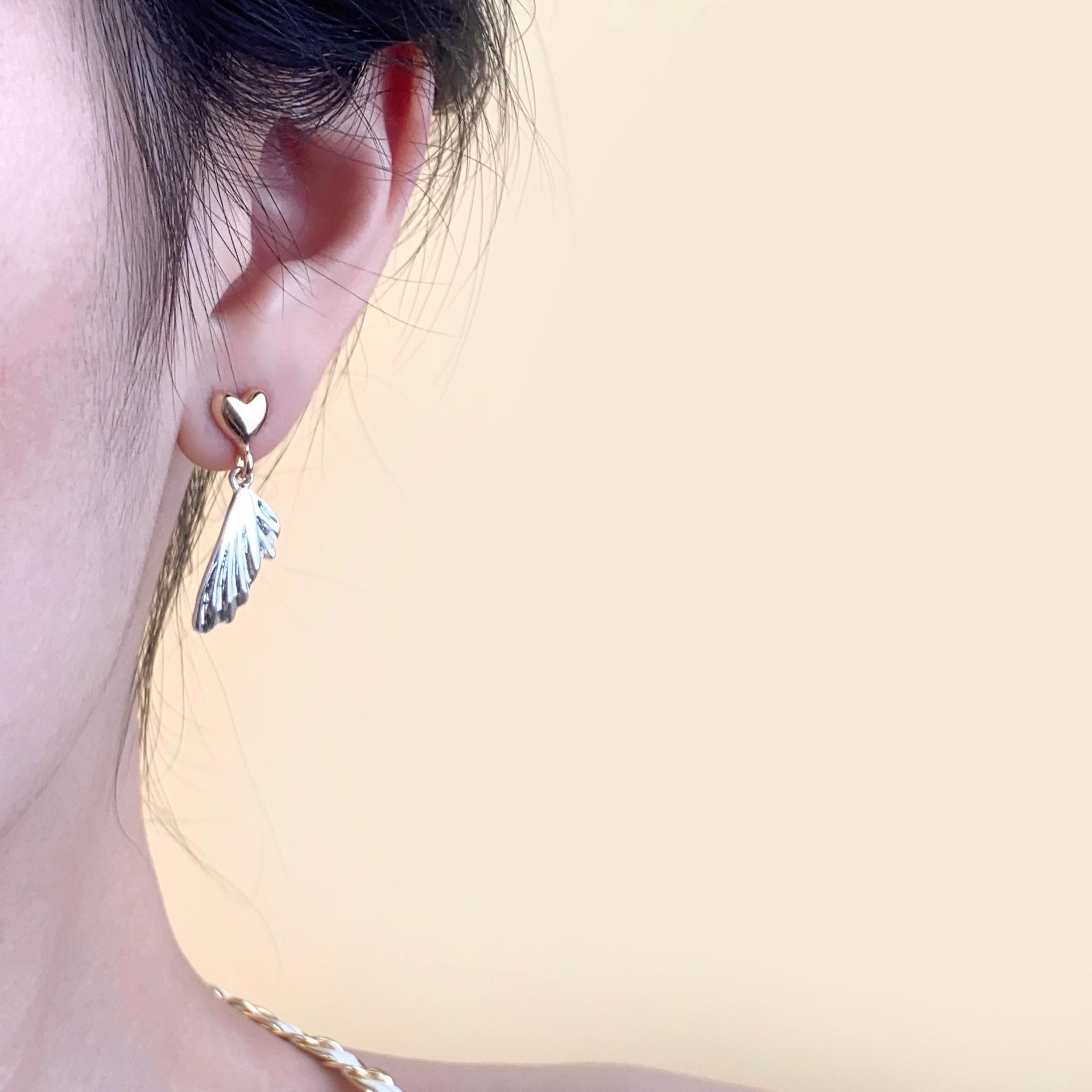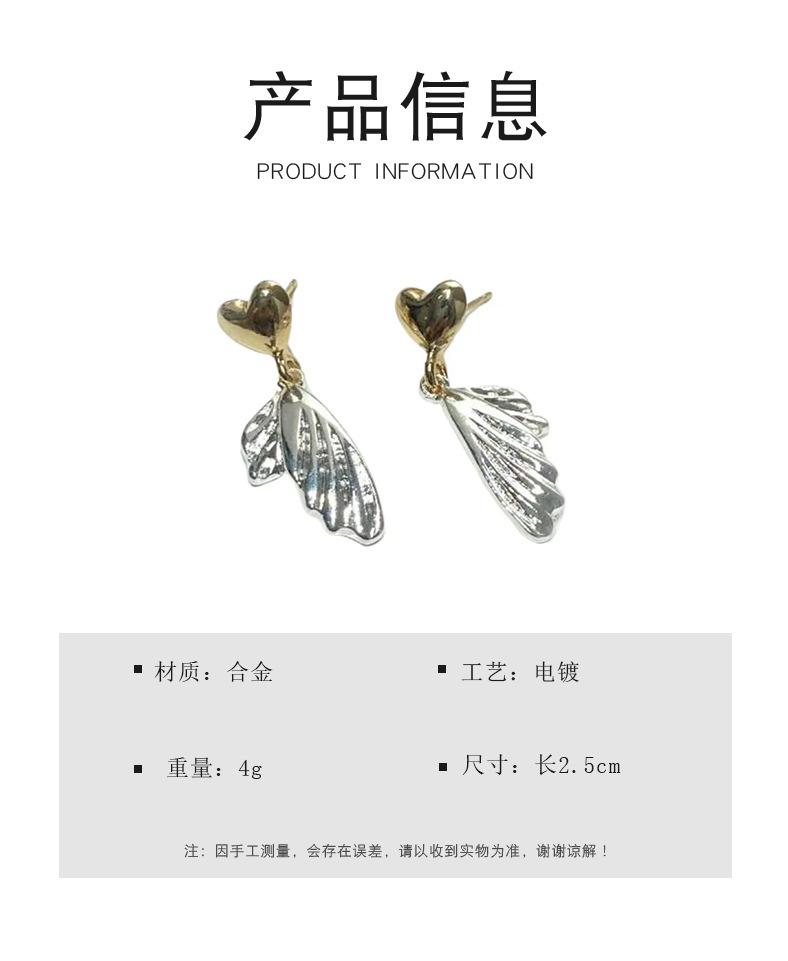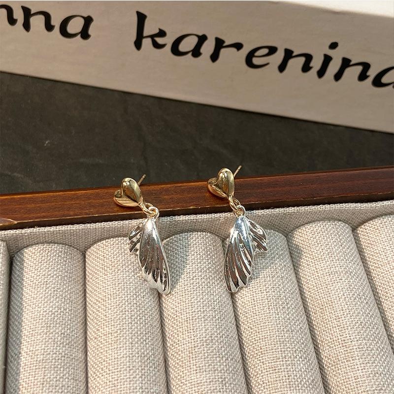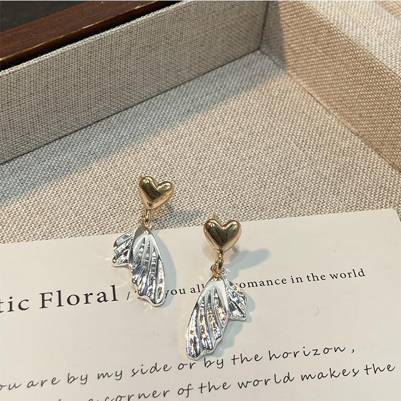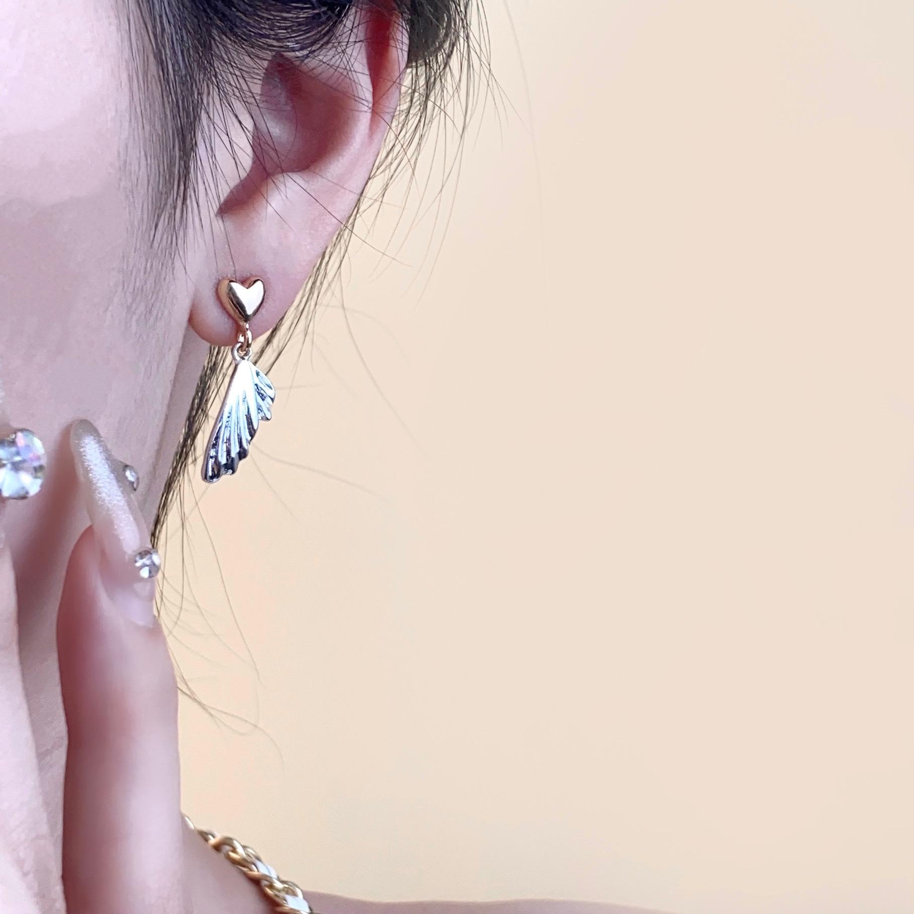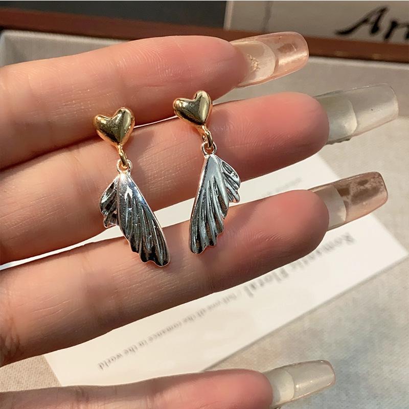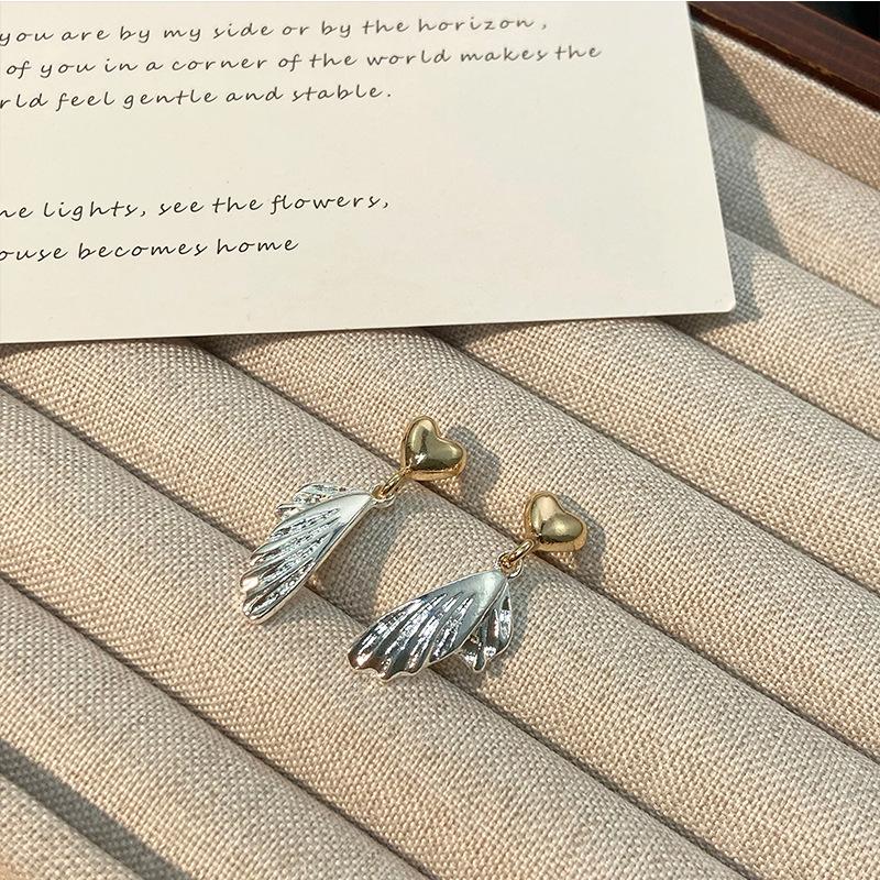 Pendientes asimétricos de alas de amor a juego en color oro y plata francés, temperamento simple, pendientes de alta gama, pendientes de diseño nicho