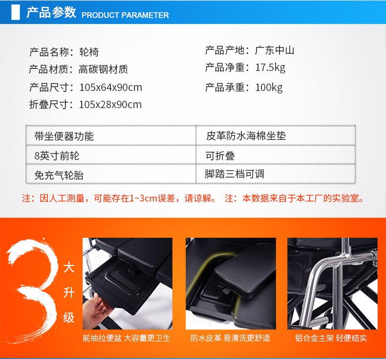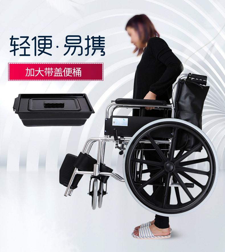 Silla de ruedas Fushide para personas mayores con inodoro, plegable, ligera, multifuncional, para discapacitados, de acero con alto contenido de carbono.