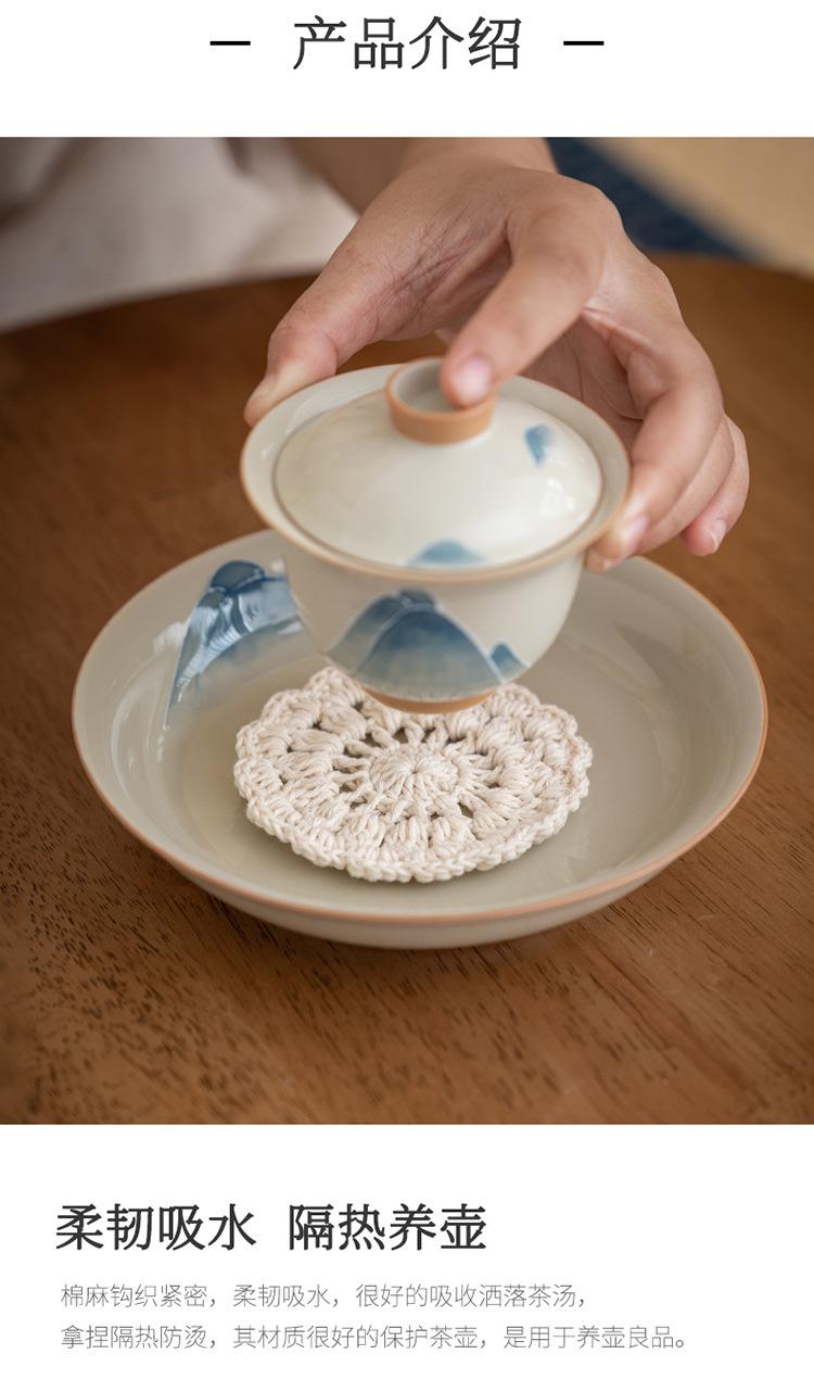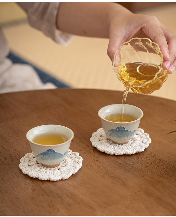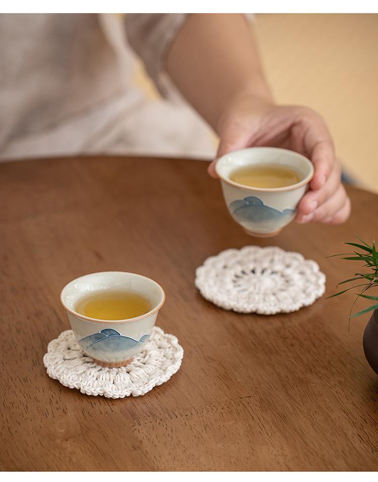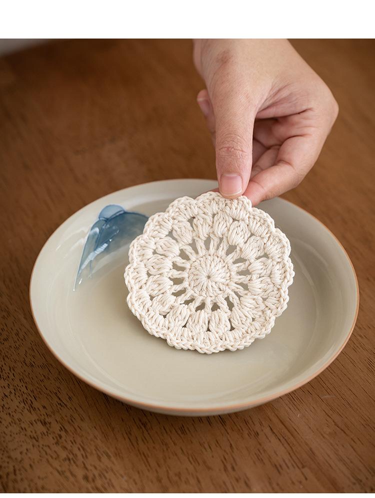 Nuevo tapete de ganchillo estilo chino para taza, tapete aislante térmico antiescaldamiento, tapete redondo simple tejido a mano para taza de té, accesorios para fotos