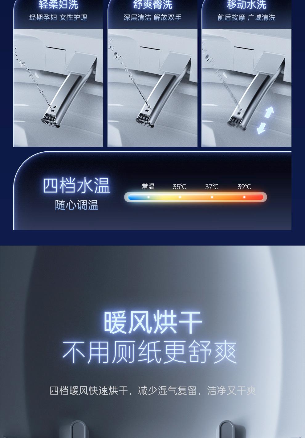 Remote control, Drying, Instant type, Automatic flip cover, Buttocks wash, Women's washing, Nozzle self-cleani...