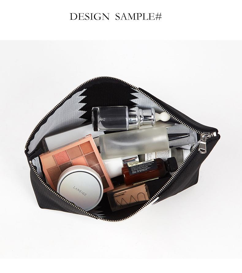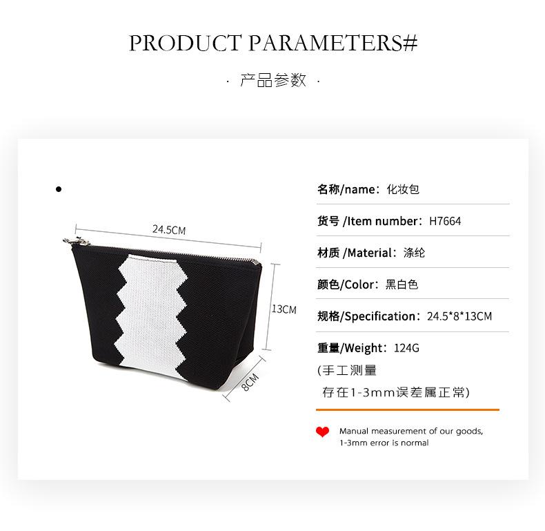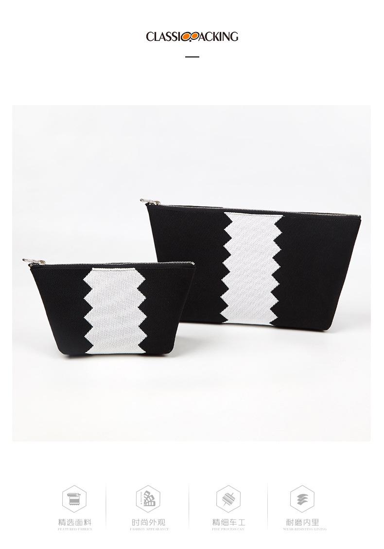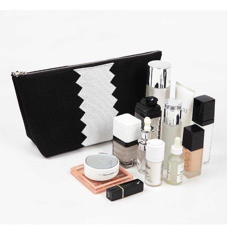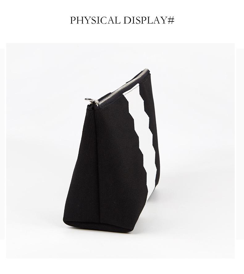Neceser de viaje portátil de poliéster blanco y negro, organizador de gran capacidad con cremallera, personalizable de fábrica.