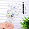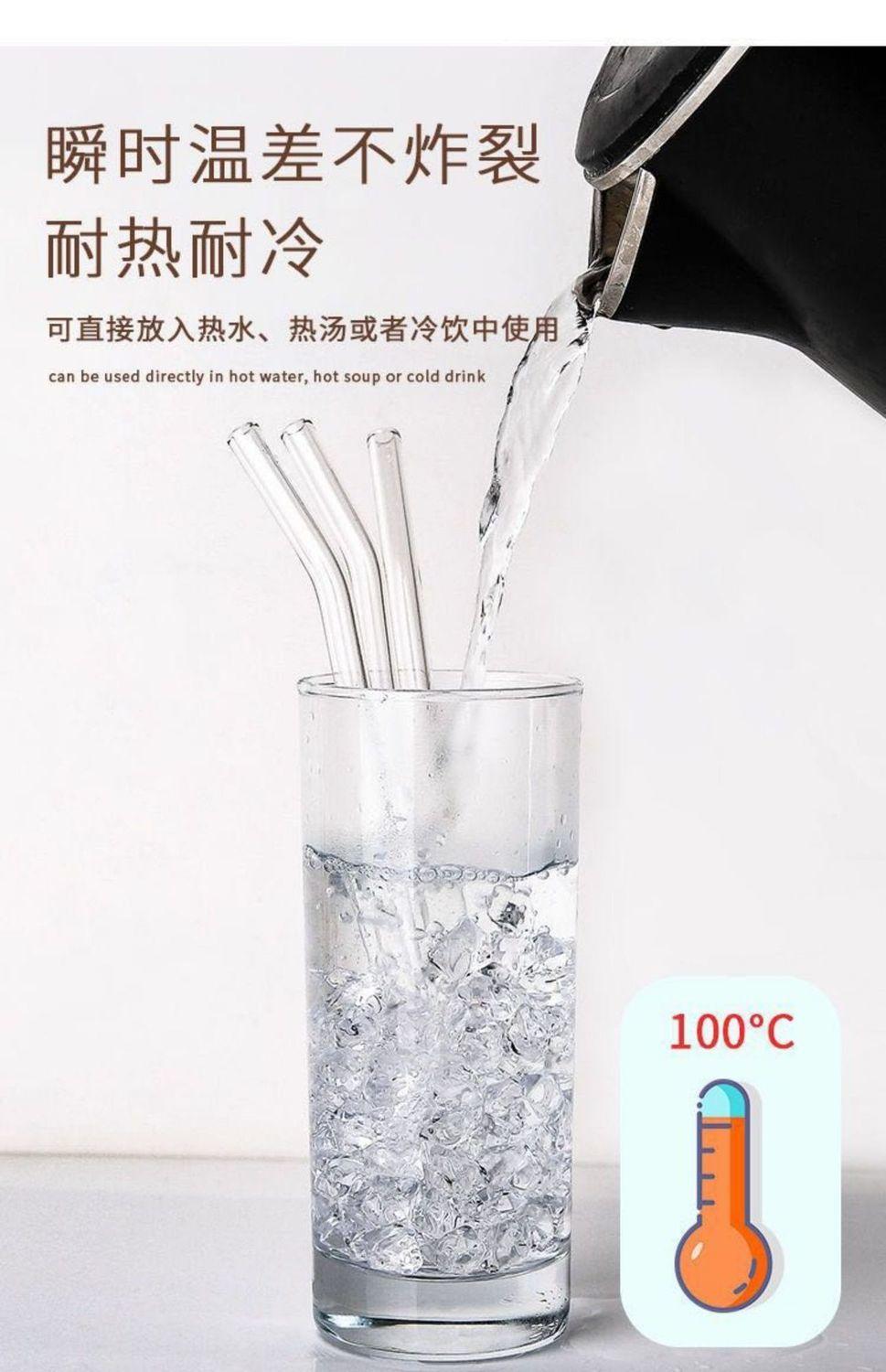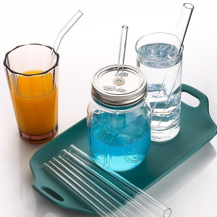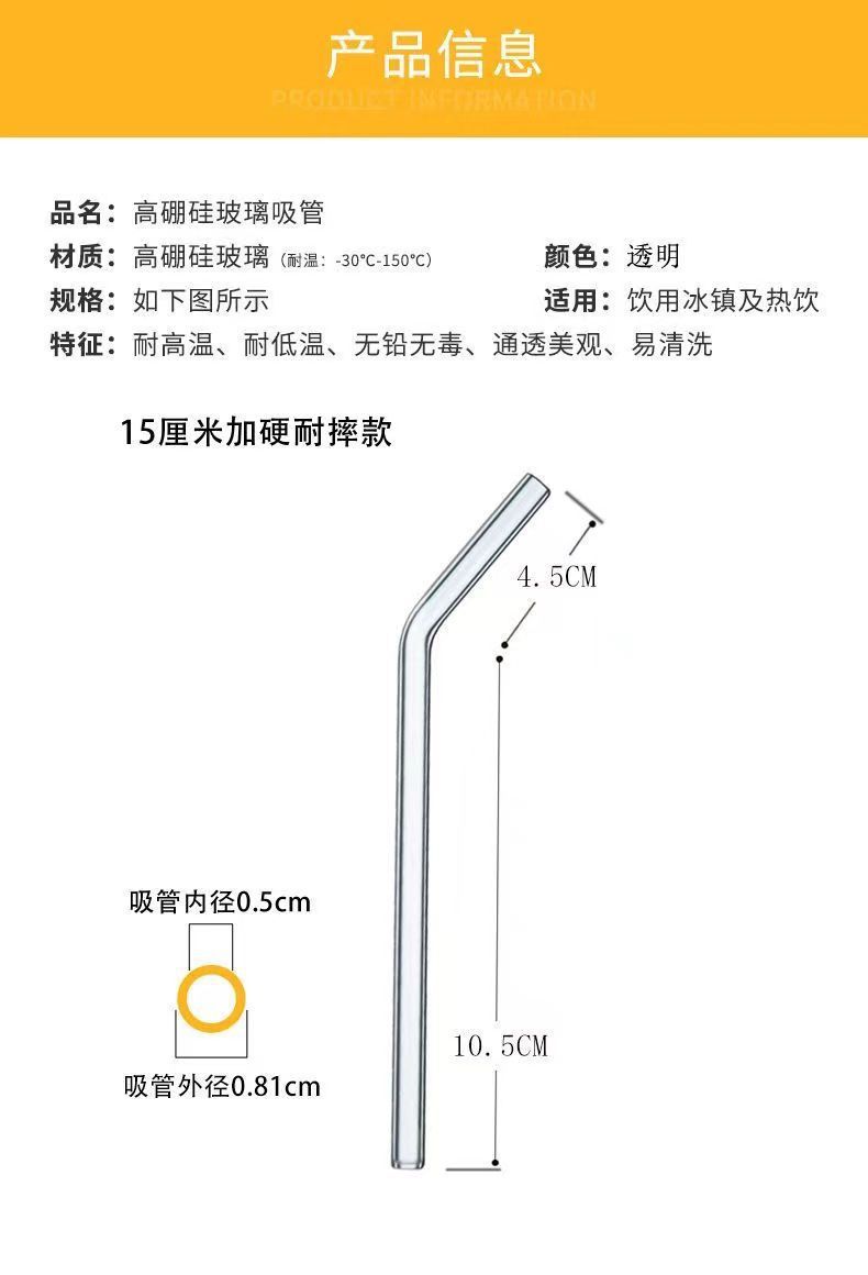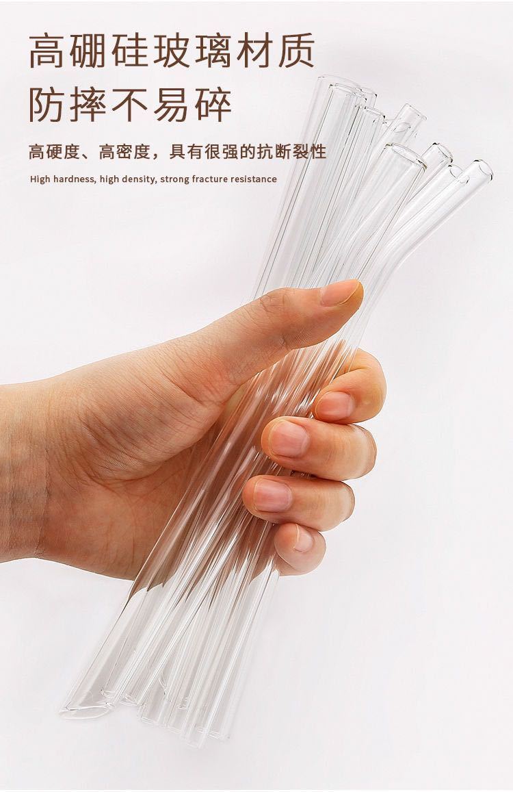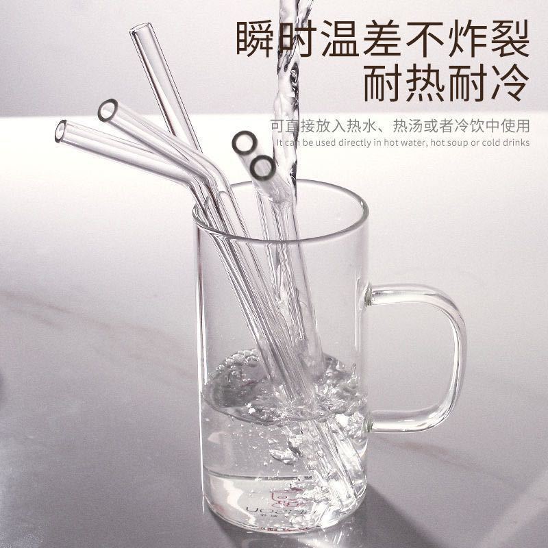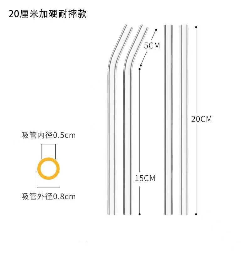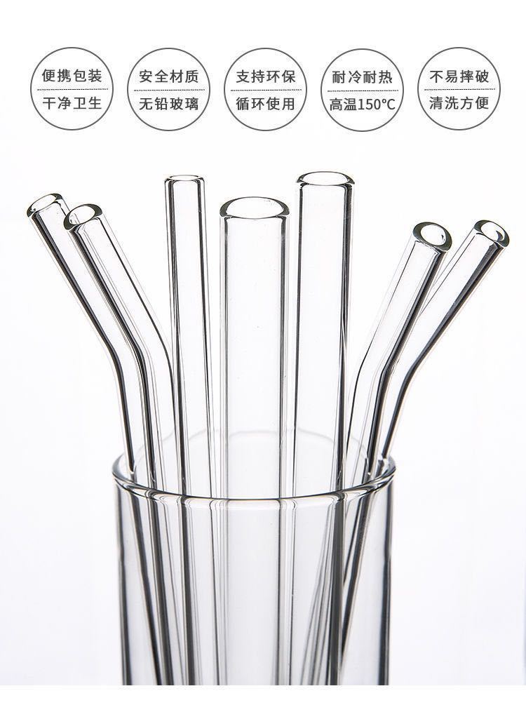 Pajita de vidrio reforzada, transparente, resistente a caídas, resistente a altas temperaturas, accesorio universal corto de 15 cm, mezcla de grado alimenticio
