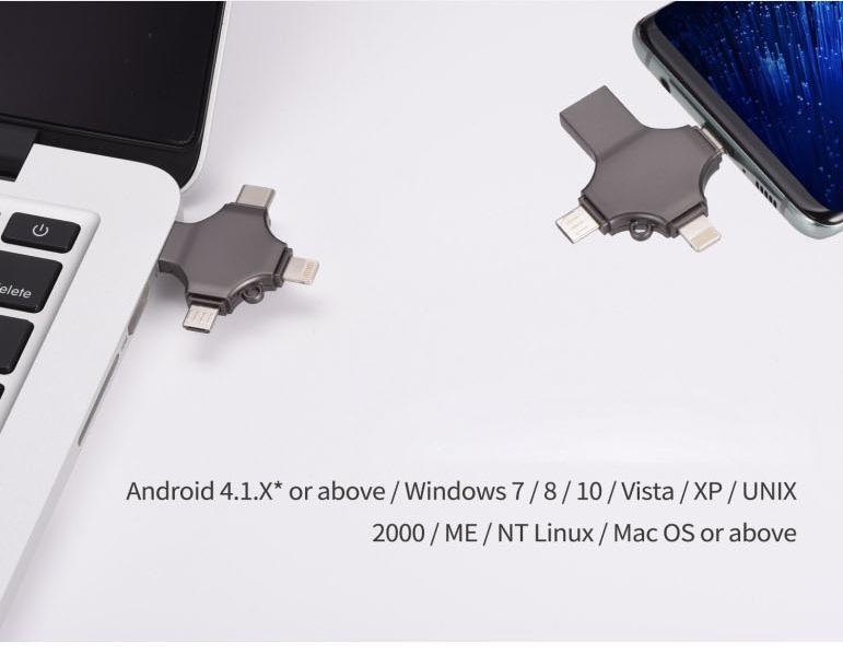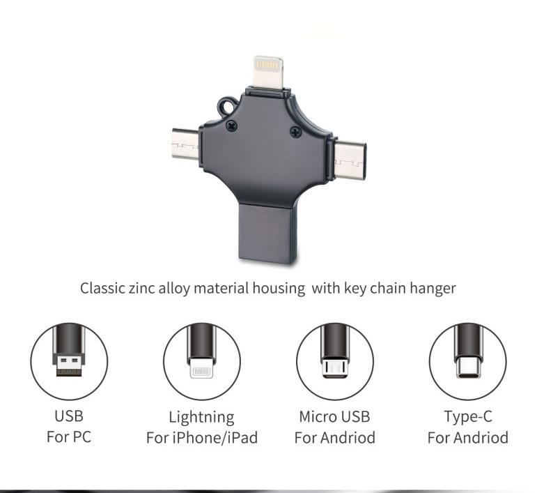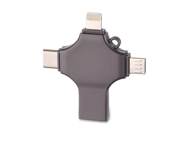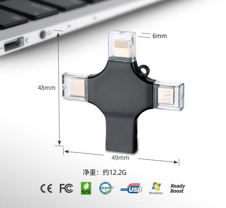 Compra Fabricante de Memoria USB Venta al por Mayor Personalizado Multifuncional 128g 3.0 Cuatro en Uno Teléfono Móvil Computadora Memoria USB en Forma de Cruz Metal Memoria USB USB al por mayor en Joom.pro
