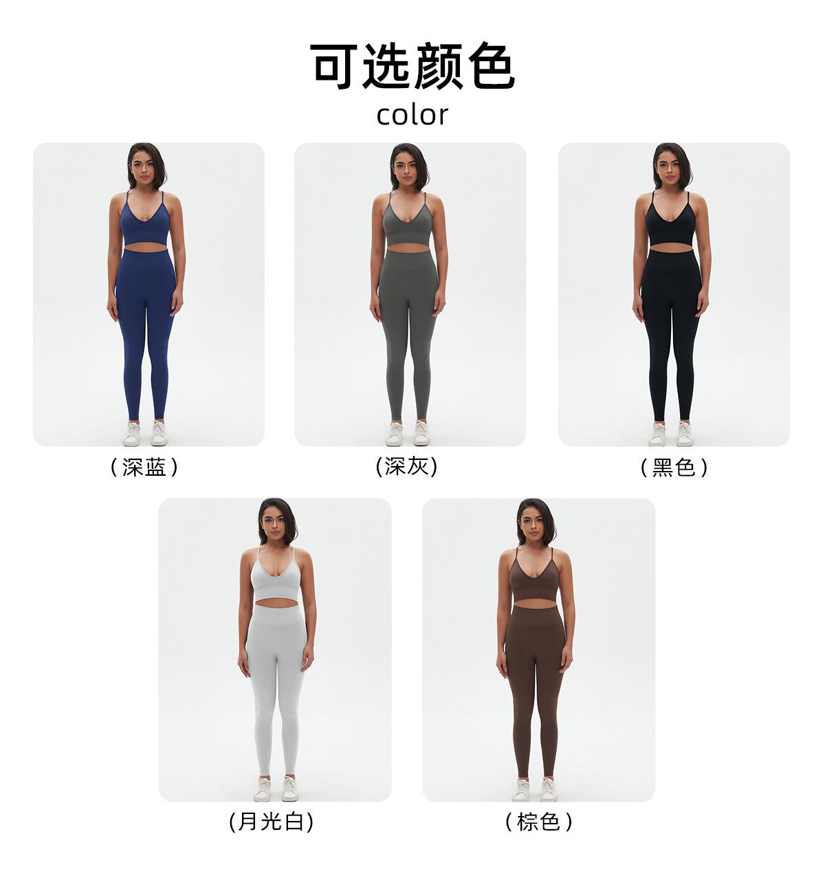 Nuevo conjunto de dos piezas de yoga con espalda descubierta, ajustado, sexy, sin costuras, de color sólido, para deportes, correr y fitness