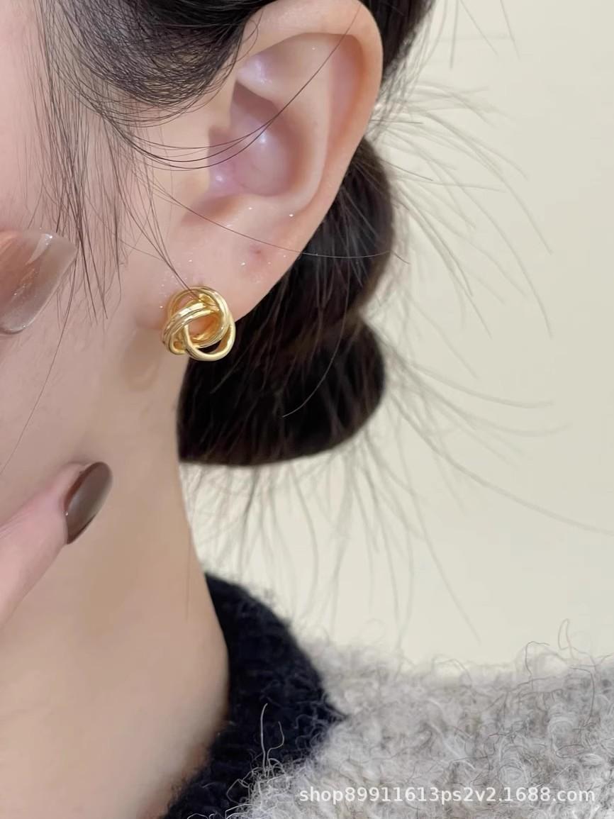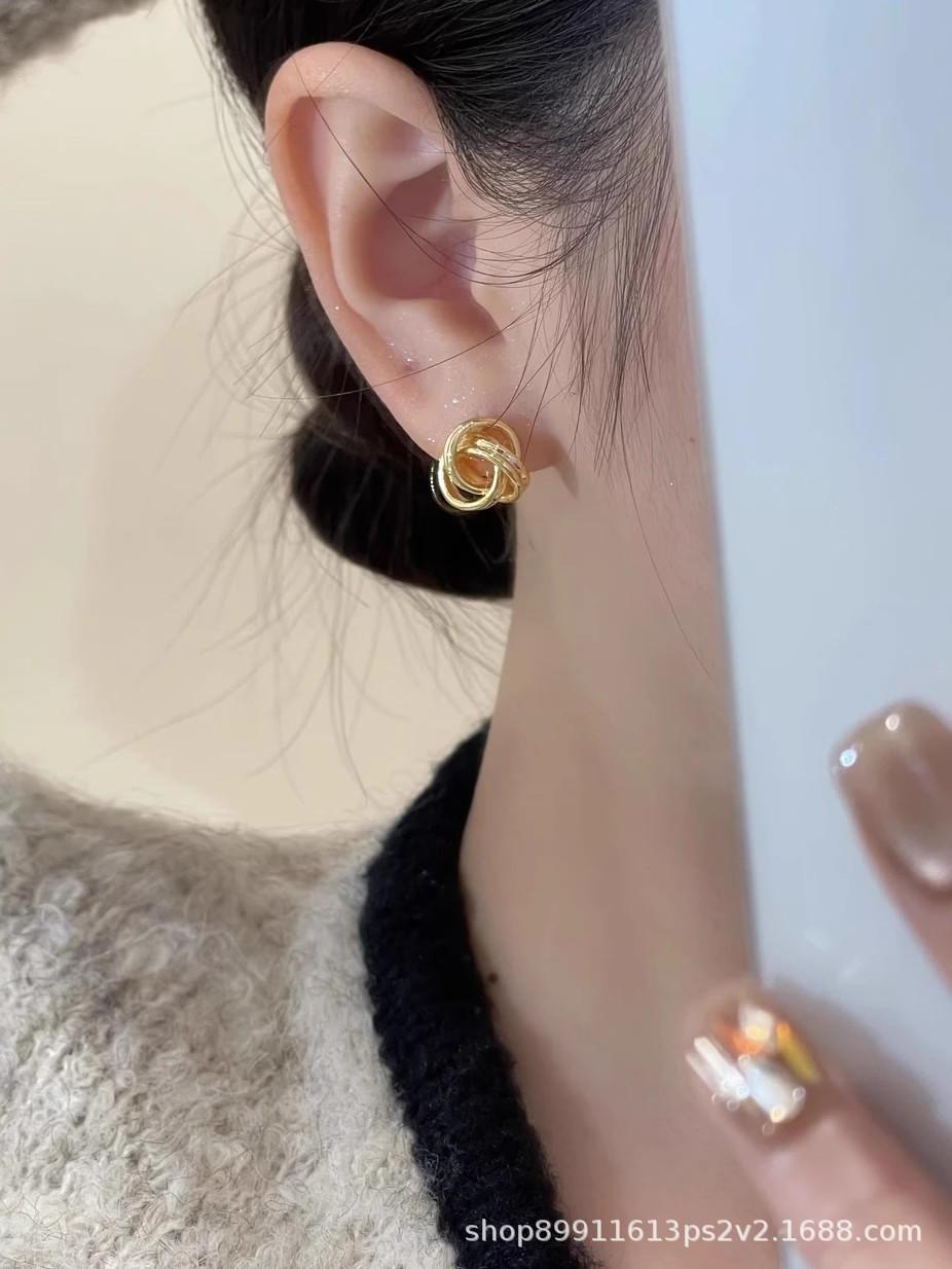 Aretes Entrelazados Irregulares para Mujer, Simples, de Alta Gama, Elegantes, Aretes Estilo Metal, Versátiles Aretes Estilo Francés, Modernos