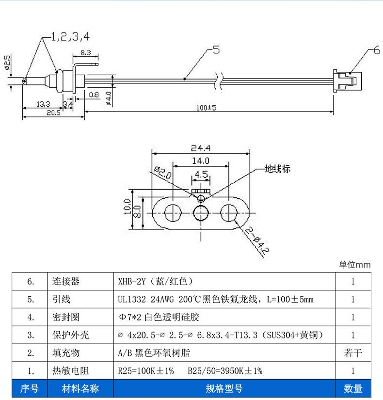Componentes electrónicos de detección de temperatura, termistor 304, sonda de detección de temperatura, hervidor eléctrico, acondicionador de leche, sensor de temperatura NTC