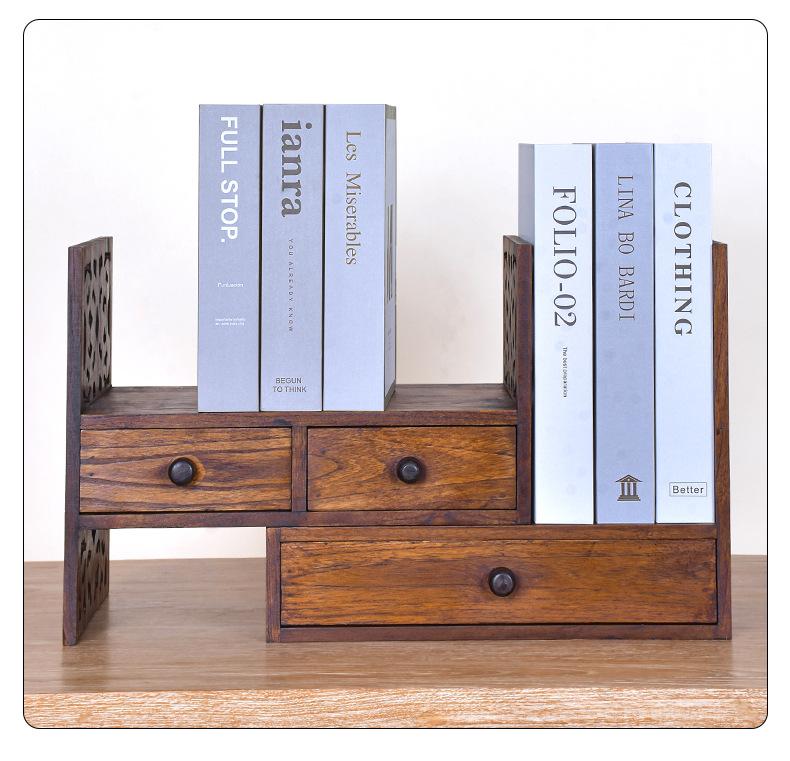 Estantería de Escritorio Pequeña Estante de Almacenamiento Creativo Retro Madera Maciza Escritorio de Estudiante Estante Ventana Mirador Dormitorio Estantería Pequeña