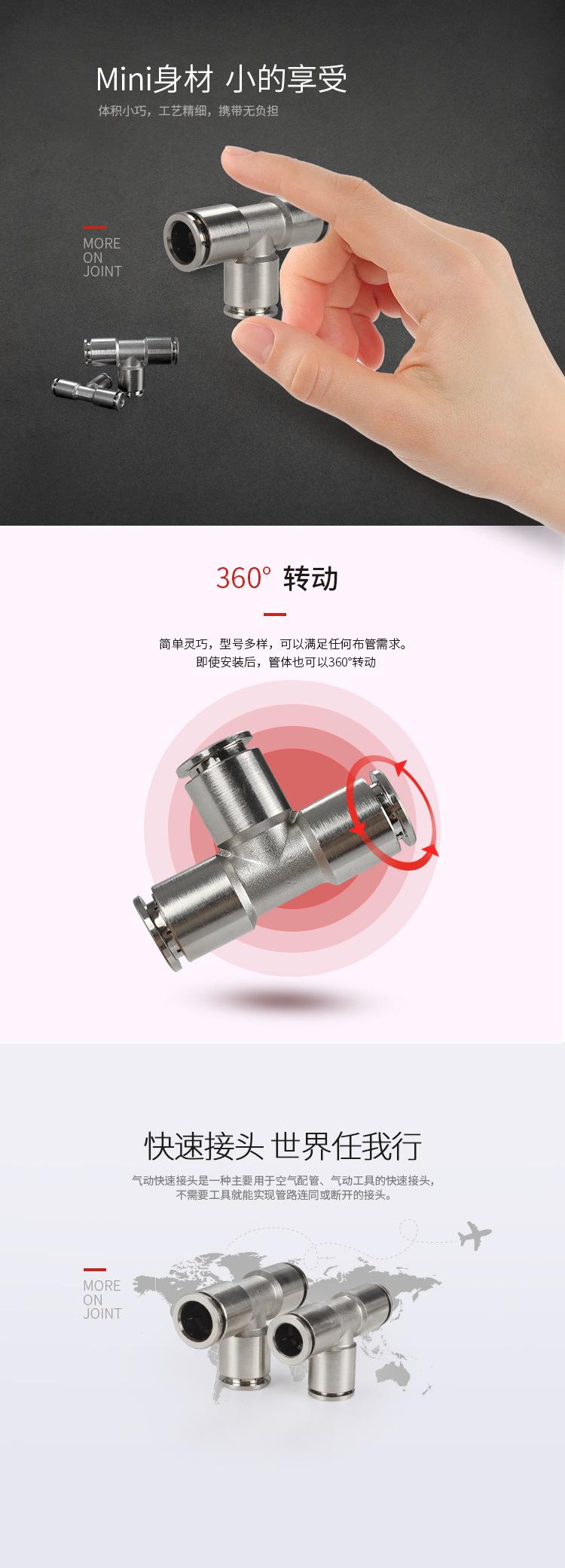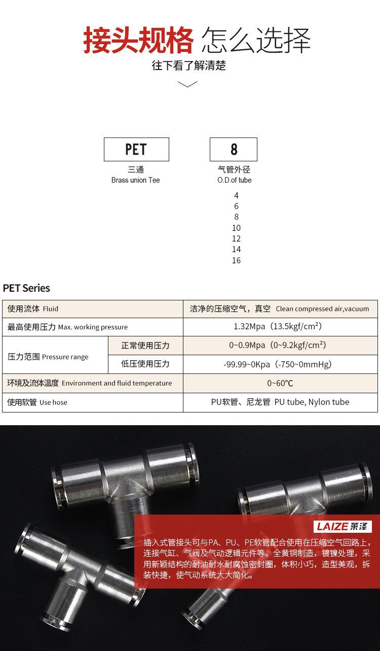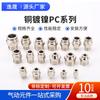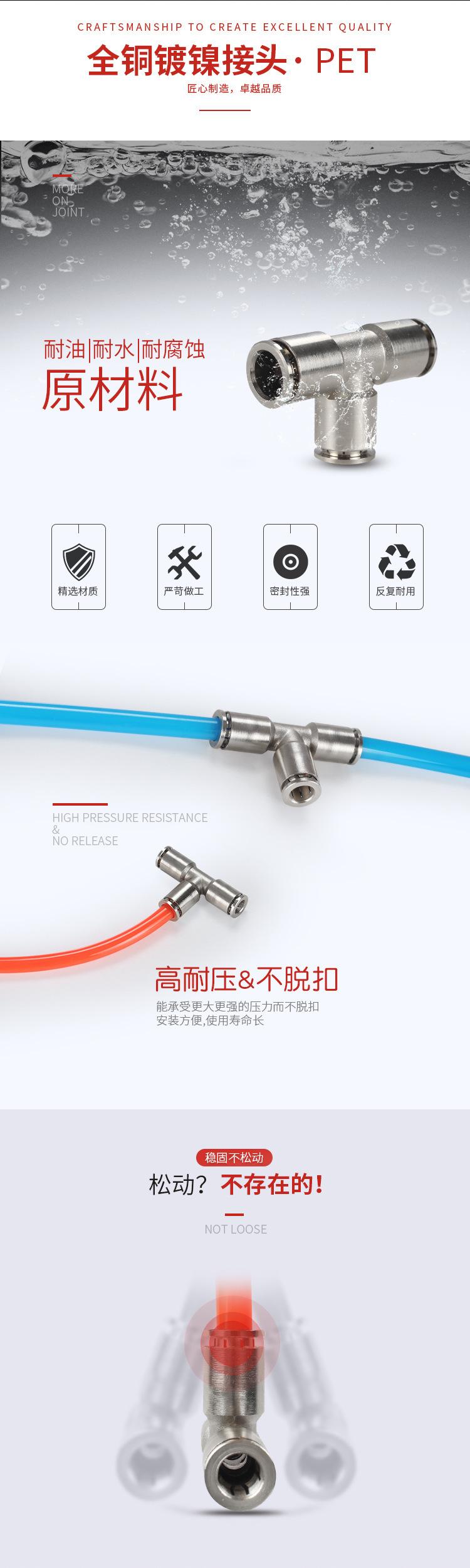 Conector rápido de metal niquelado de cobre PE-8, conector rápido neumático, conector en T, resistente a la corrosión por alta temperatura y presión.