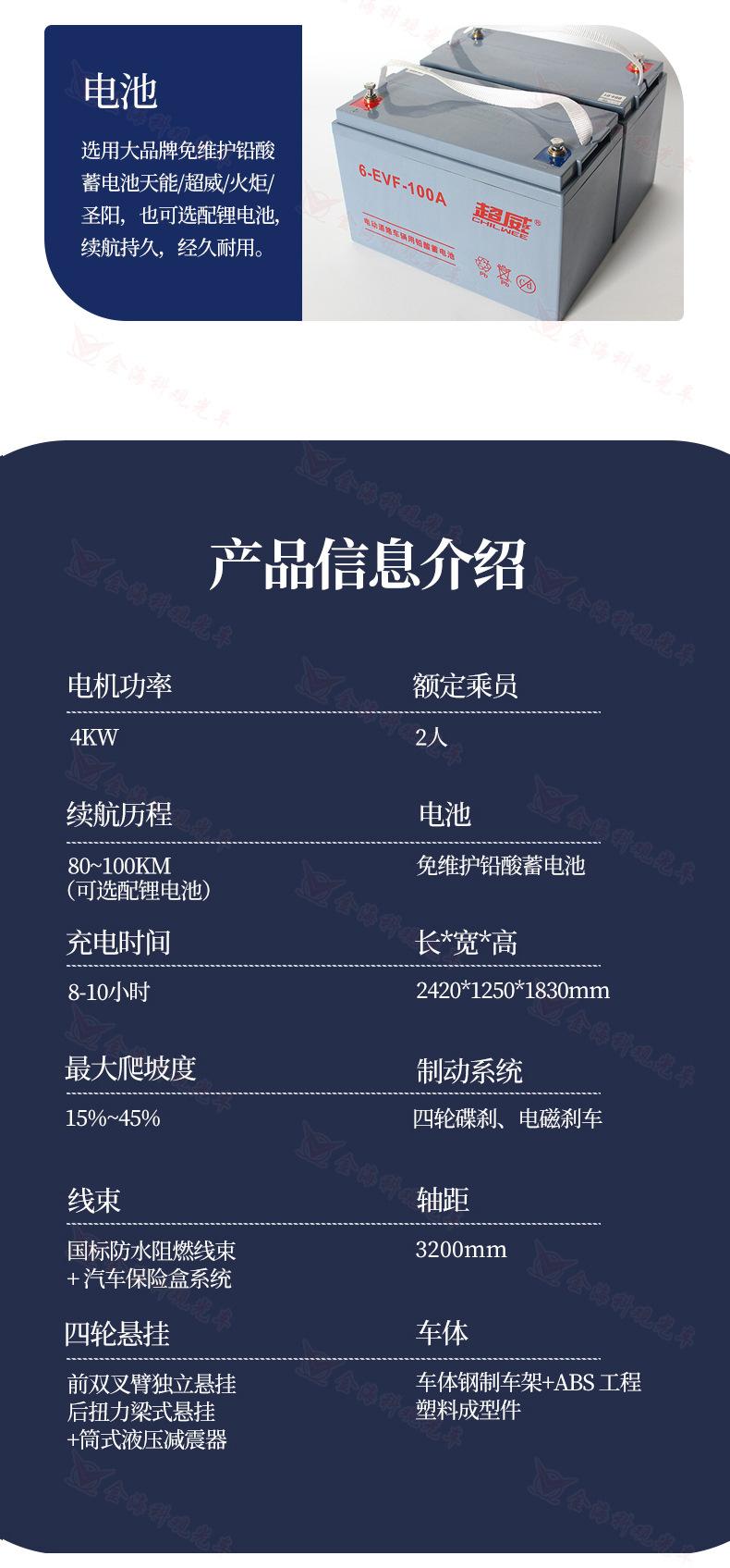 Parque Lugar Escénico Carrito de Golf de 2 Asientos Vehículo de Patrulla de Seguridad para Parque de Hotel Carro de Batería para Campo de Golf