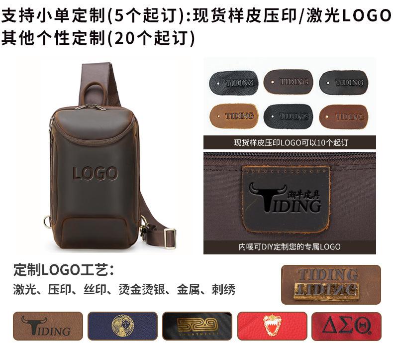 Bolso de Pecho de Gran Capacidad de Cuero Genuino Personalizado de Fábrica para Hombre, Bolso Bandolera Multifuncional para Hombro, Bolso de Pecho de Cuero Retro Europeo y Americano Crazy Horse