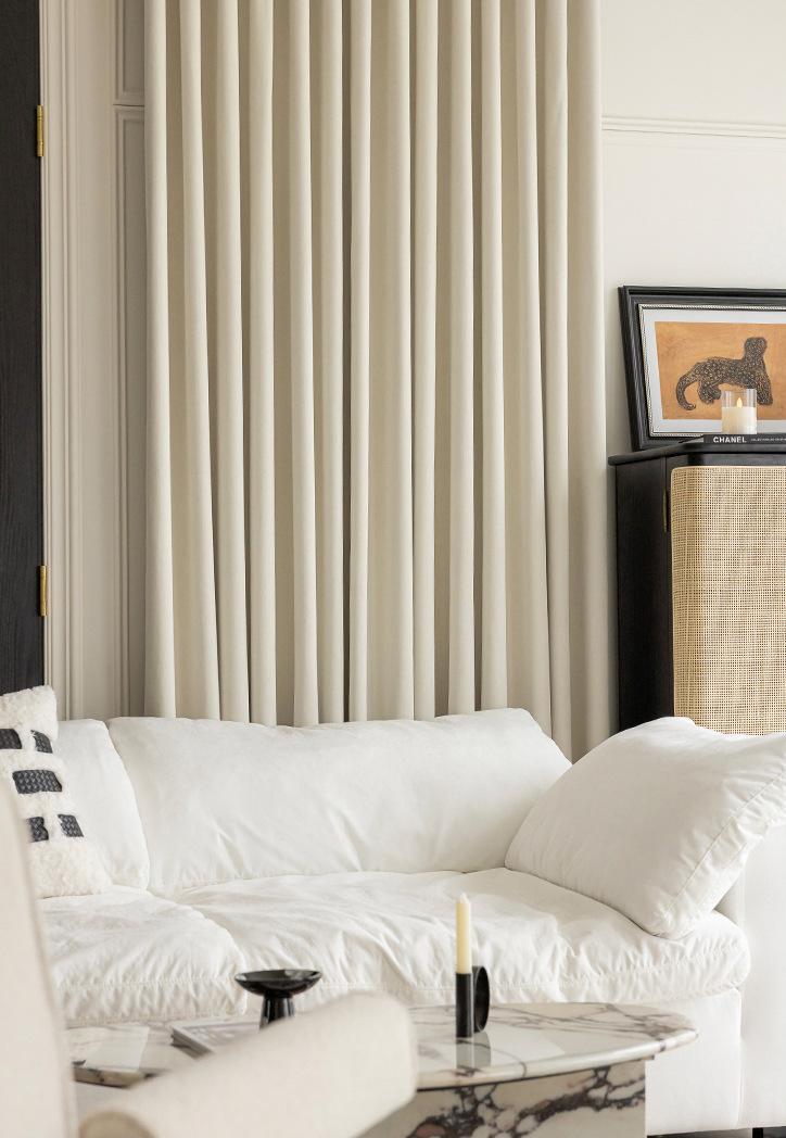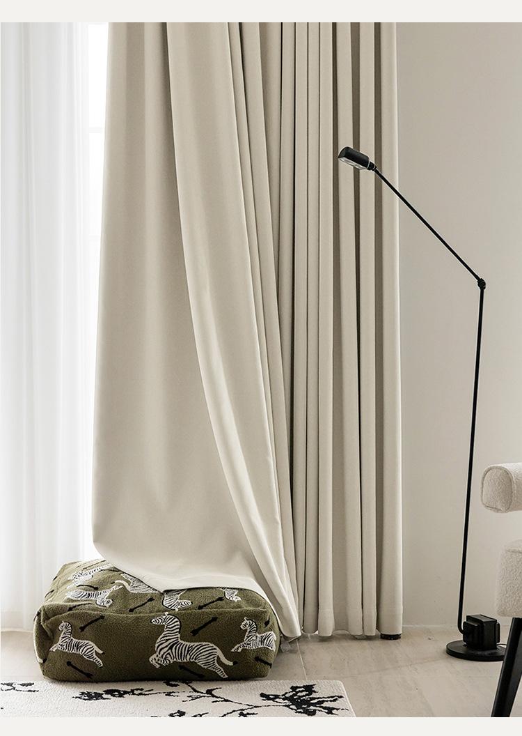 Chenilla Dormitorio Sala de Estar Crema Protección Solar Tela Cortina Francesa Tela No Recubierta Física Tela Cortina Blackout Total